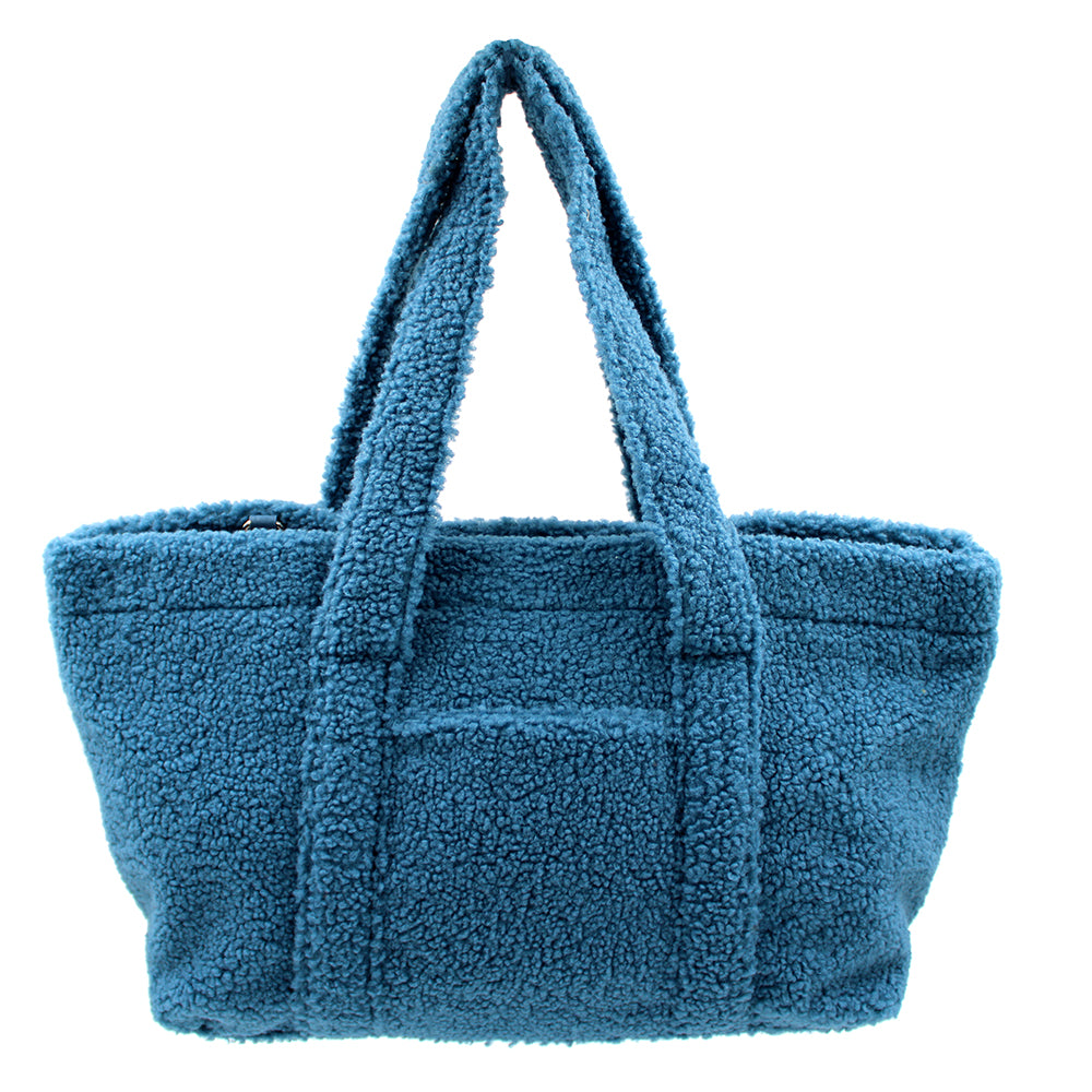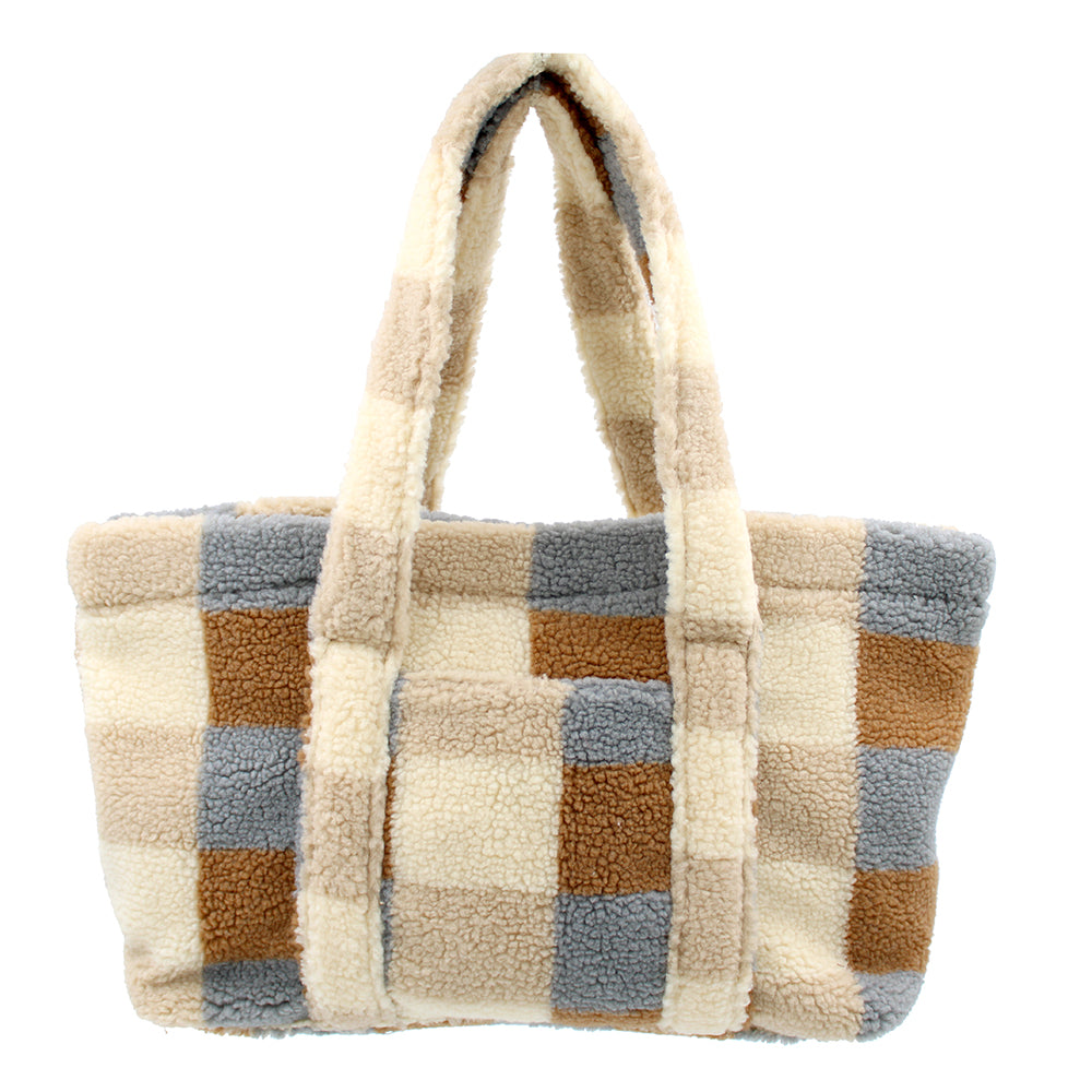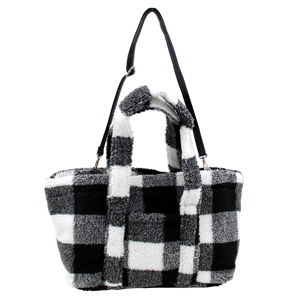 Long adjustable PU material strap. Sherpa material. Snap Closure. Interior zipper pocket and 2 built-in RFID protected card sleeves.