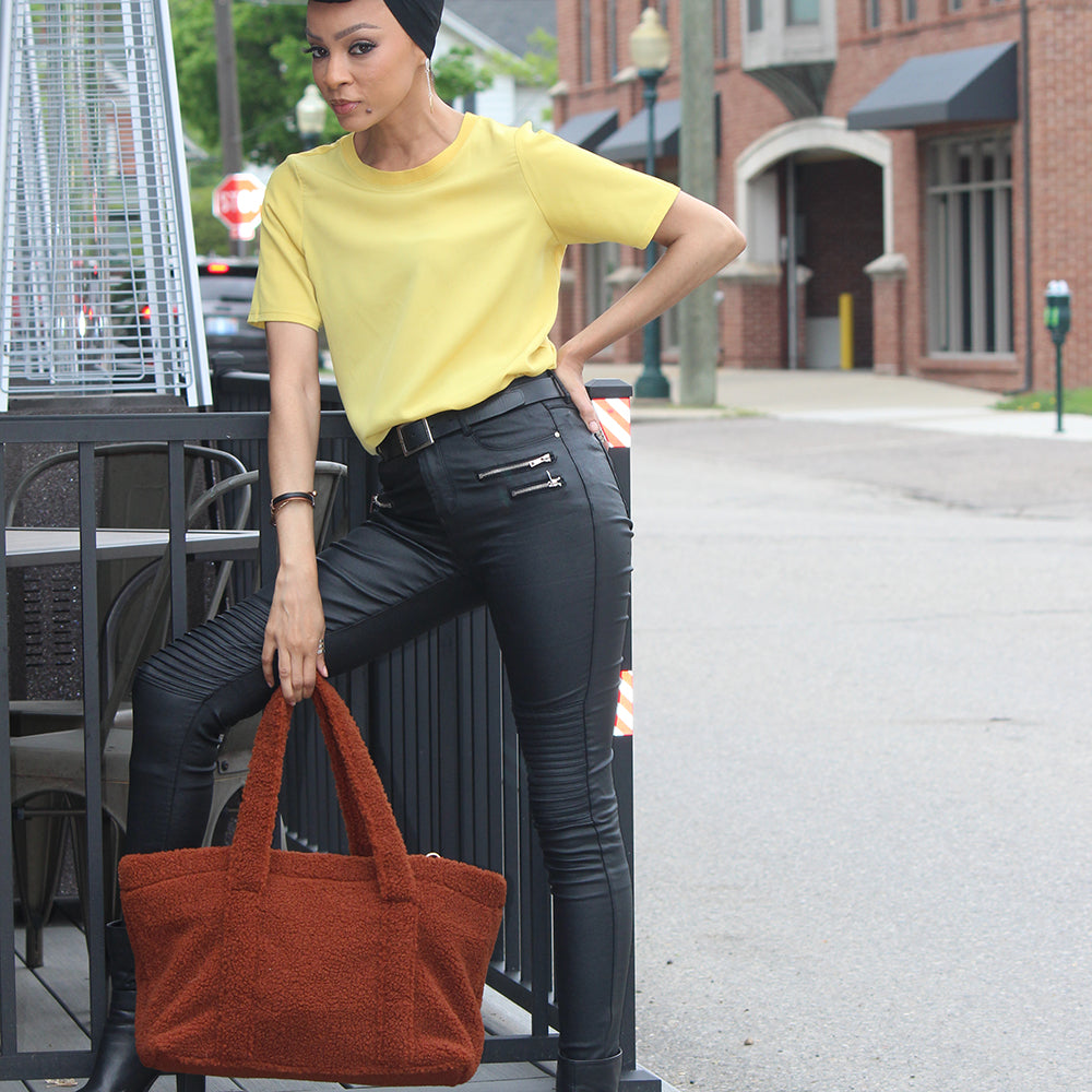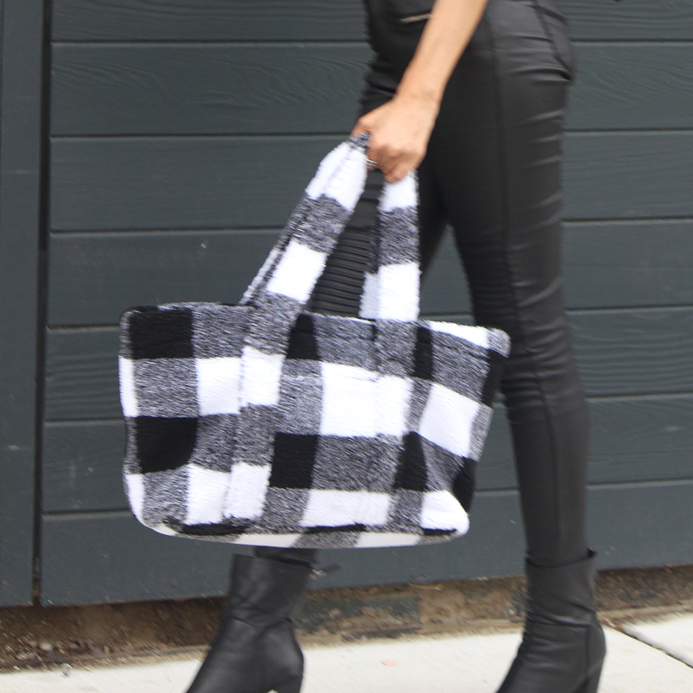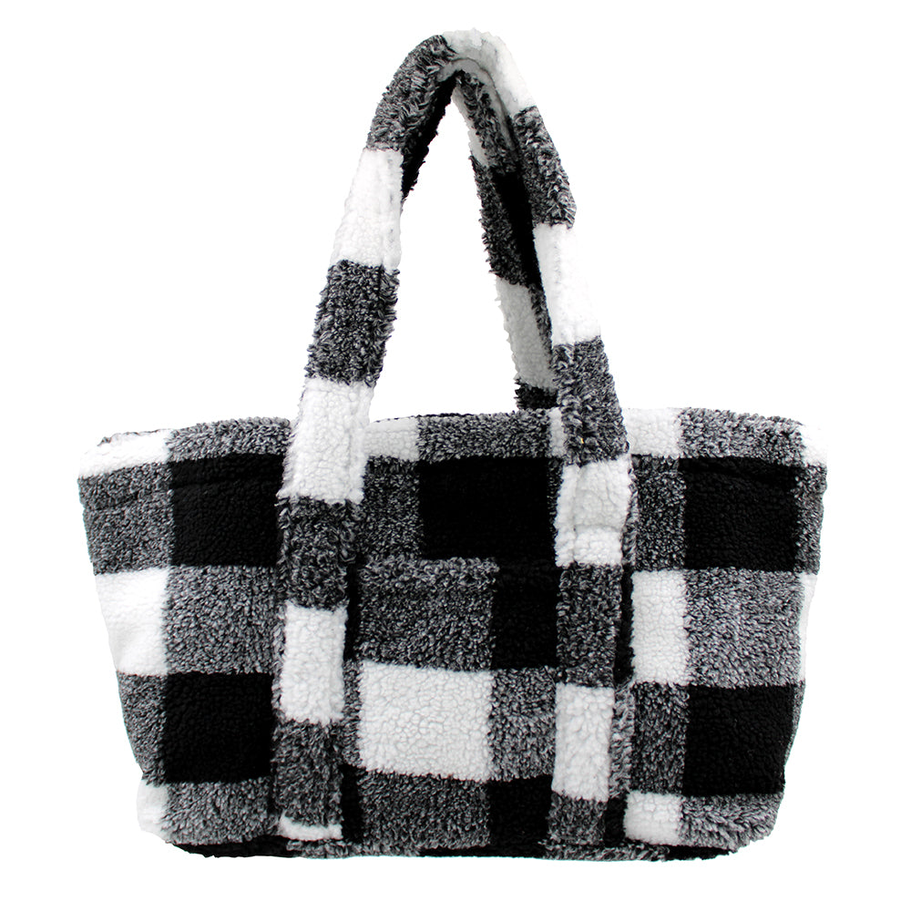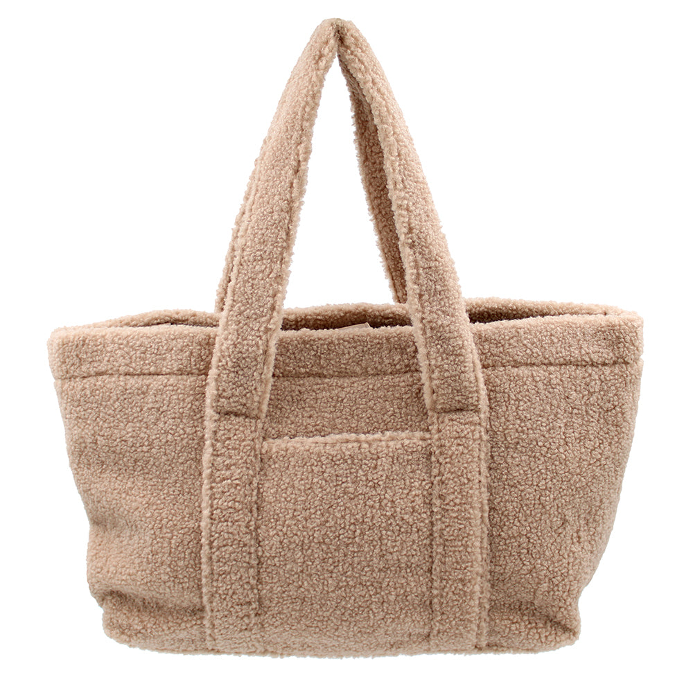 Long adjustable PU material strap. Sherpa material. Snap Closure. Interior zipper pocket and 2 built-in RFID protected card sleeves.