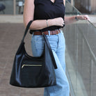 This effortlessly chic shoulder bag features a slouchy silhouette with plenty of room for your everyday essentials. Designed with an exterior zipper for quick access, an interior zipper pocket for organization, and built-in RFID card sleeves for added protection.