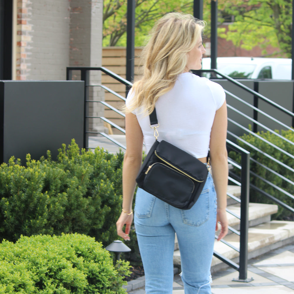 Love our new Lisa Crossbody! With an adjustable nylon strap, this bag can be used as a shoulder bag or crossbody. Lots of great compartments and zippers. Outside you’ll find a front zipper pocket, large enough to fit your phone. The flap has a zipper pocket, excellent for traveling, an out-of-the-way pocket for passports and important papers. Our nylon material is lightweight and easy to keep clean with a damp cloth.