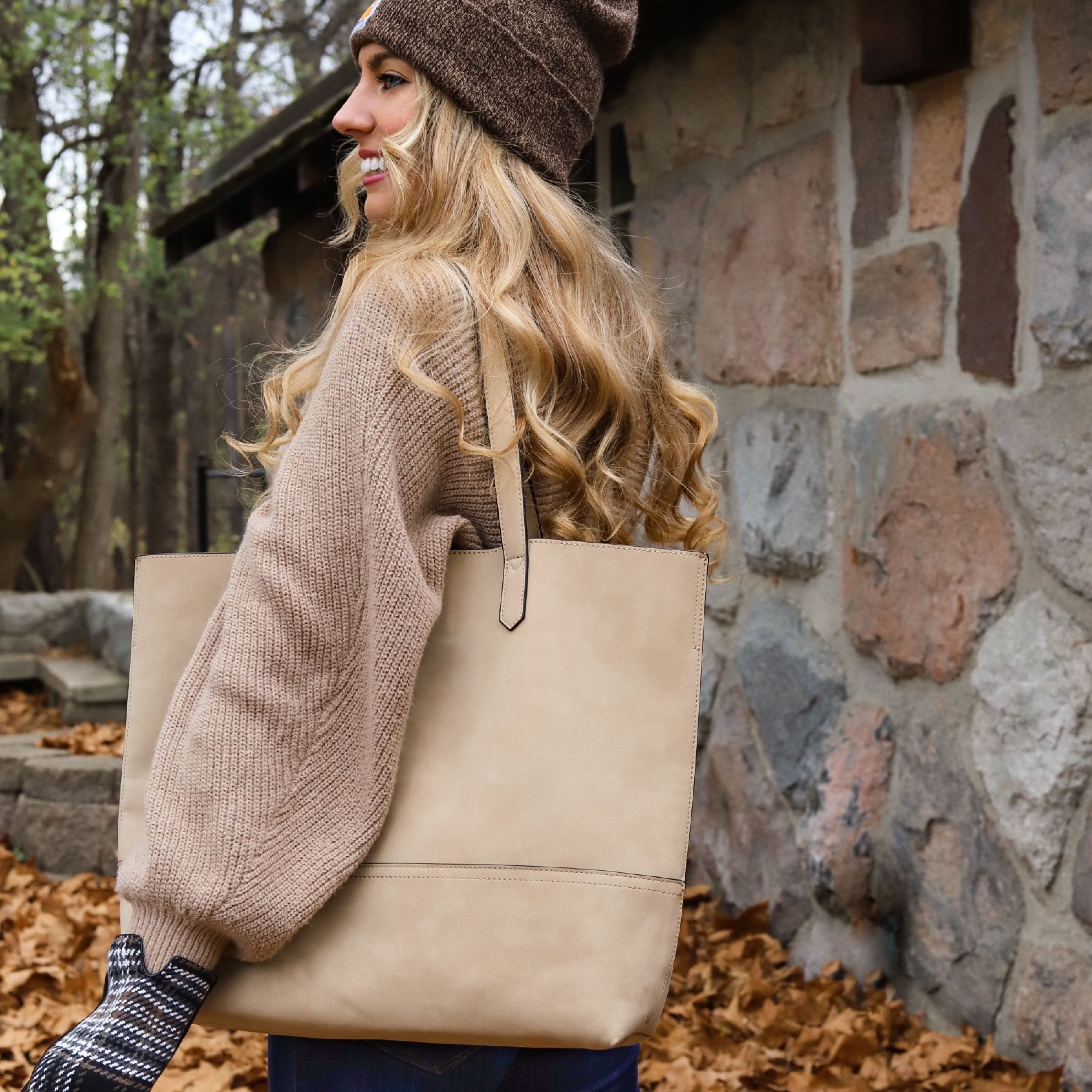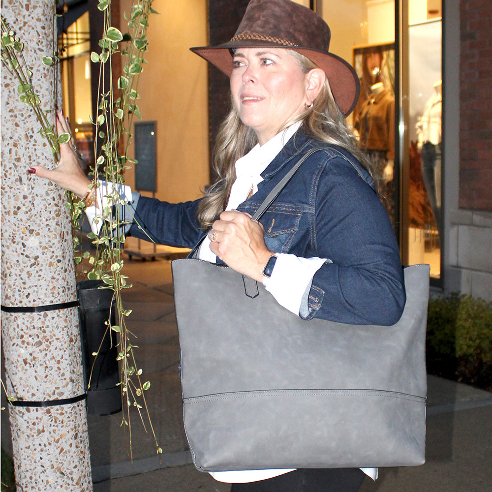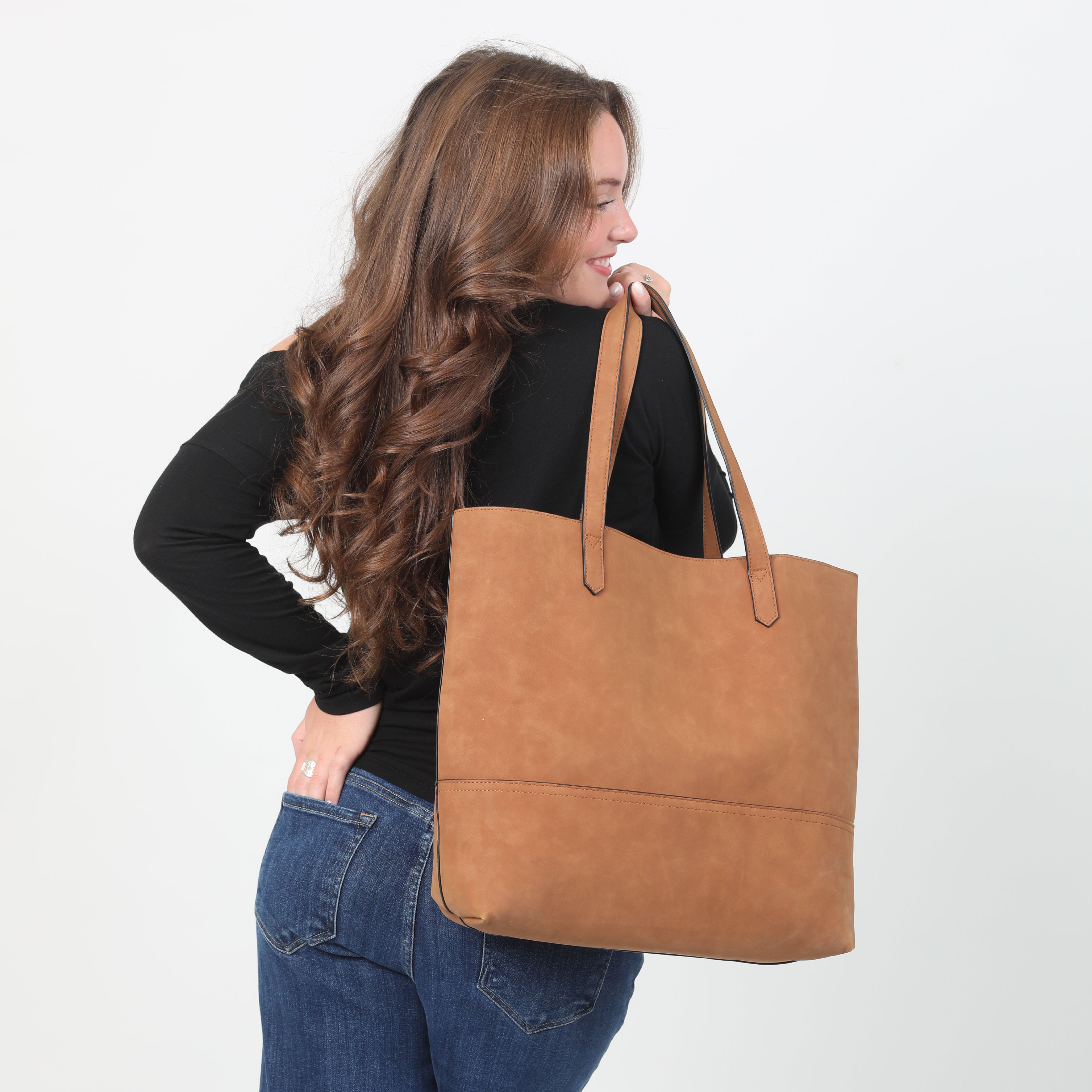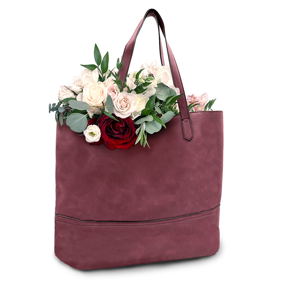 Our Taylor Tote, oversized and designed with faux suede, is honoring our founder’s daughter, Madison, on her recent wedding and her new last name, Mrs. Madison Carroll Taylor! Oversized open tote for carrying all your extras! It’s simple versatility makes this tote both fashionable and functional. Great to use for everyday with your laptop, to the beach, football games on Friday night or to the gym!