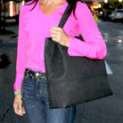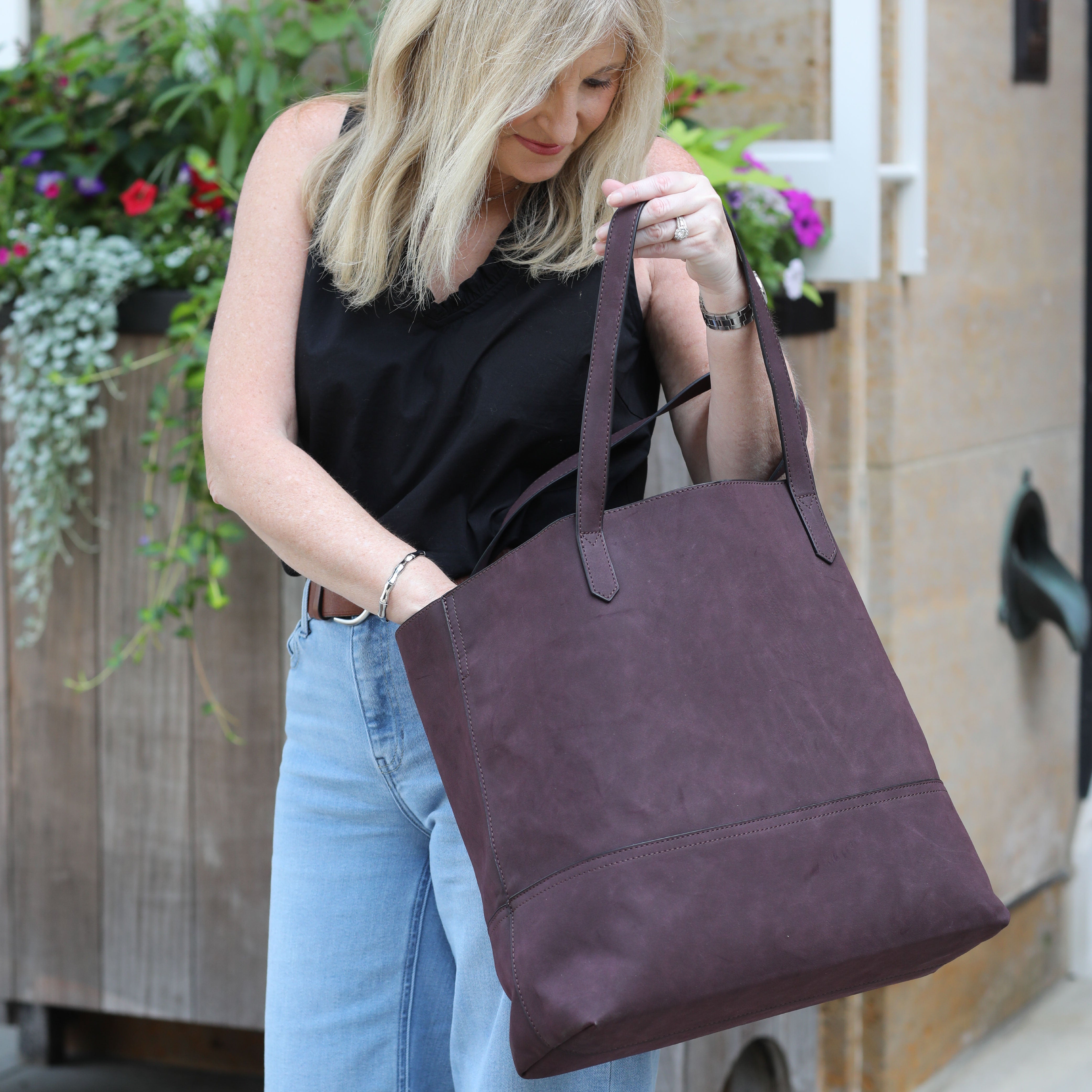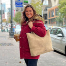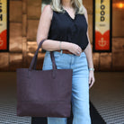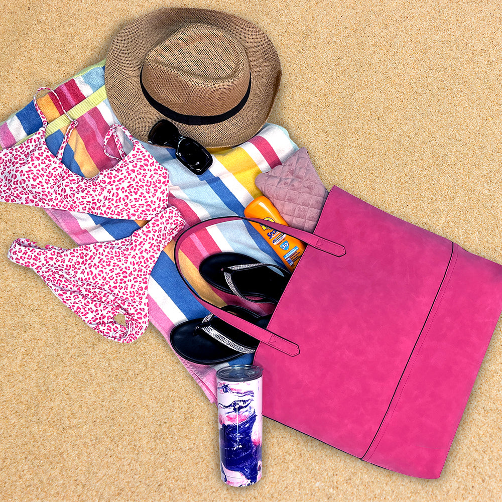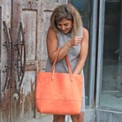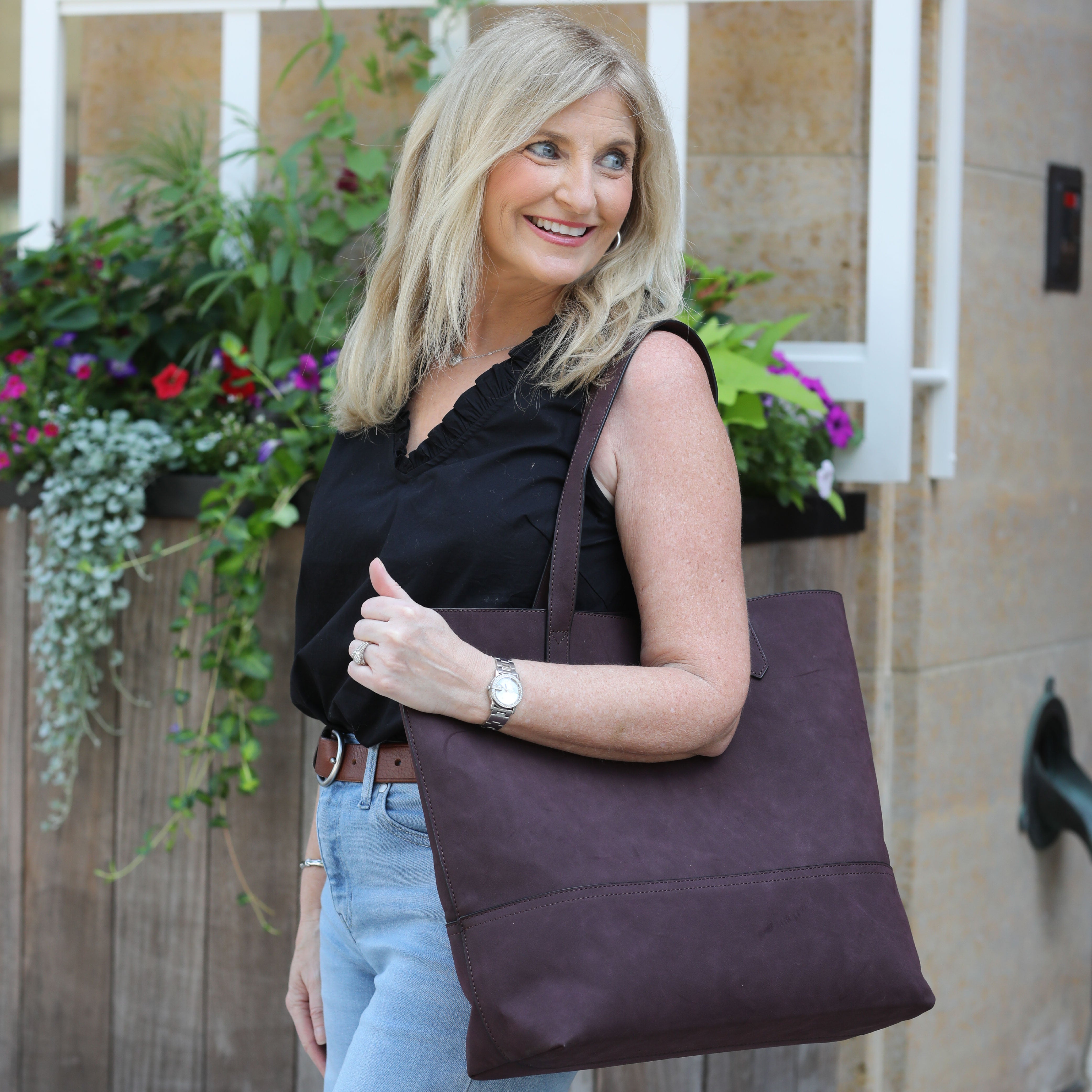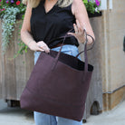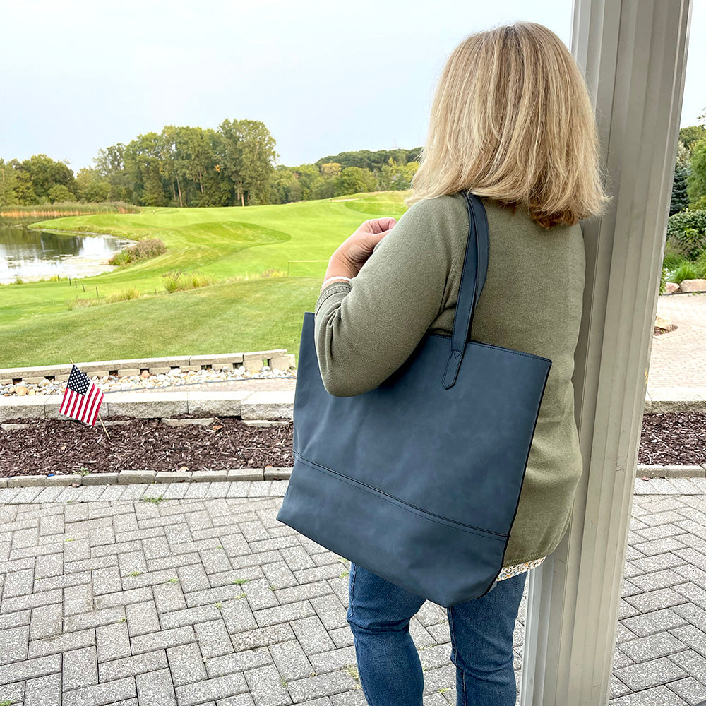 Our Taylor Tote, oversized and designed with faux suede, is honoring our founder’s daughter, Madison, on her recent wedding and her new last name, Mrs. Madison Carroll Taylor! Oversized open tote for carrying all your extras! It’s simple versatility makes this tote both fashionable and functional. Great to use for everyday with your laptop, to the beach, football games on Friday night or to the gym!