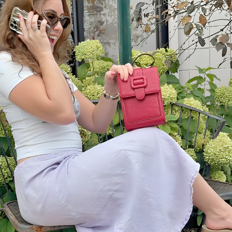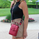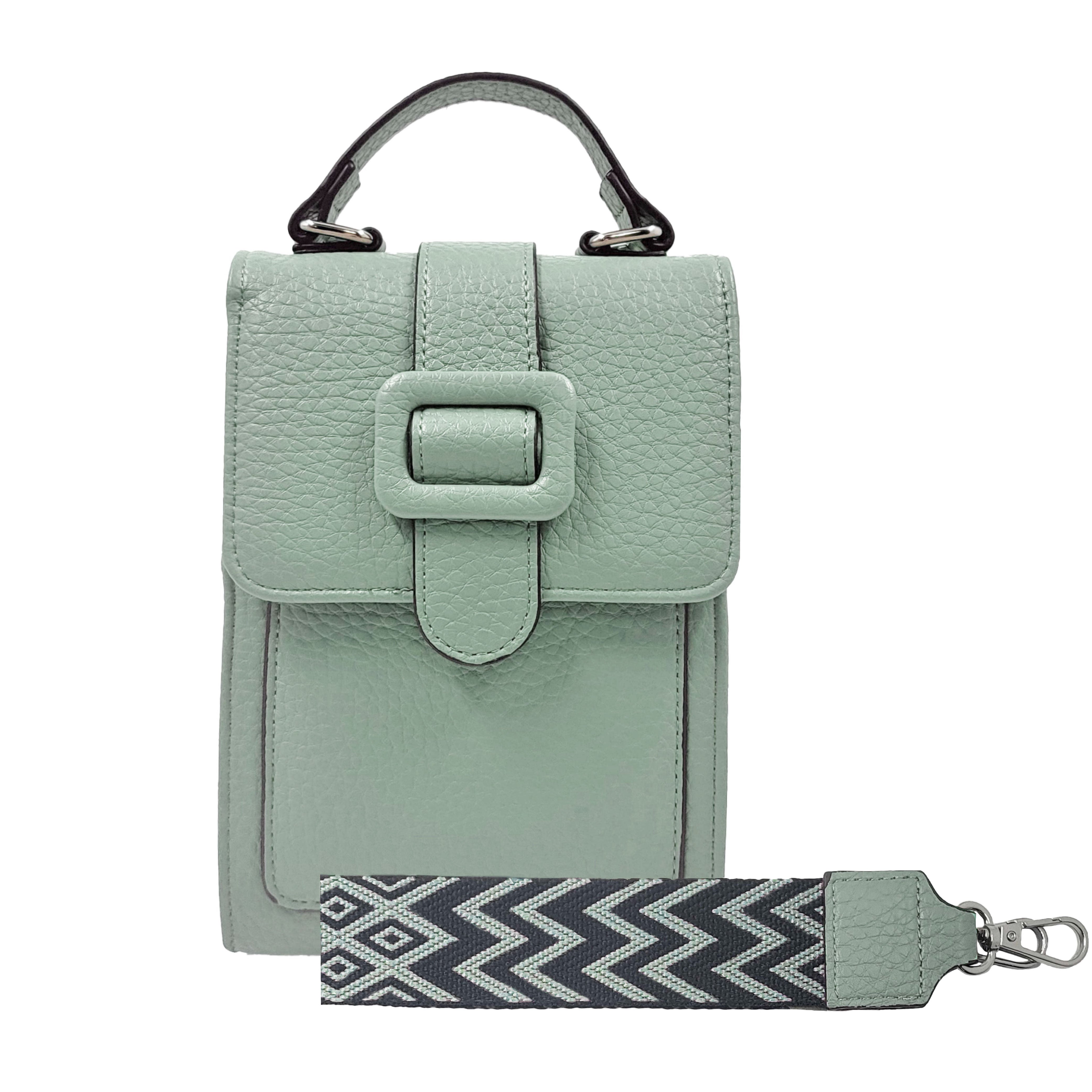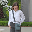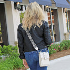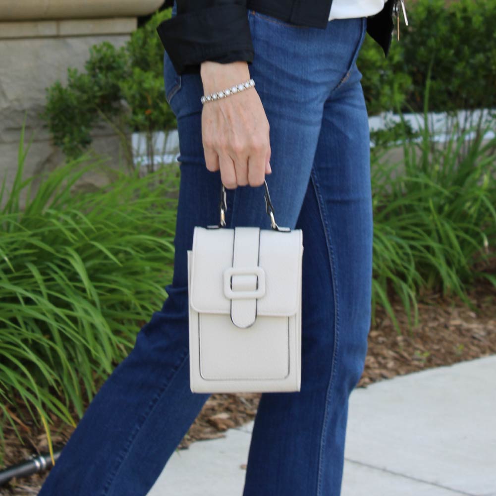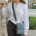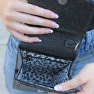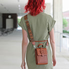 Introducing our newest crossbody, she’s large enough to fit all you need but still small and compact. With a 2 inch depth, there is room inside. Wear as a satchel or attach the coordinating guitar strap for a fun, hands-free look. On the outside back, an open pocket for phone convenience. Closes with a magnet snap, on the front you will find an open pocket. Inside is a zipper pocket and 3 RFID protected card sleeves built in.