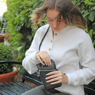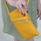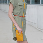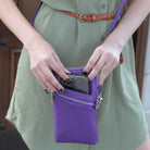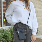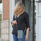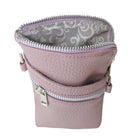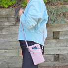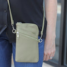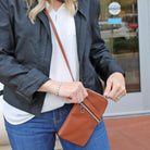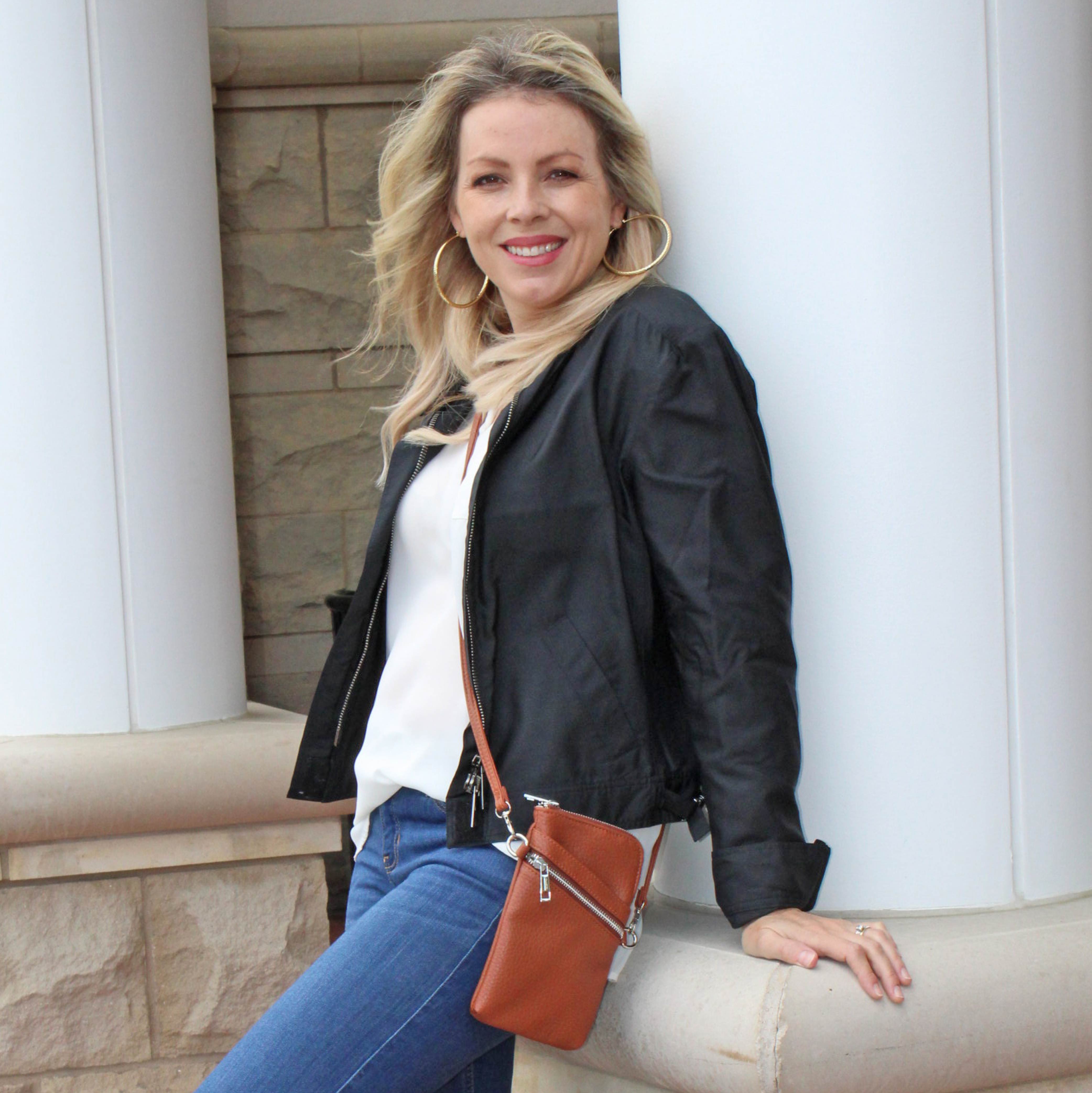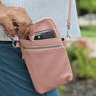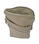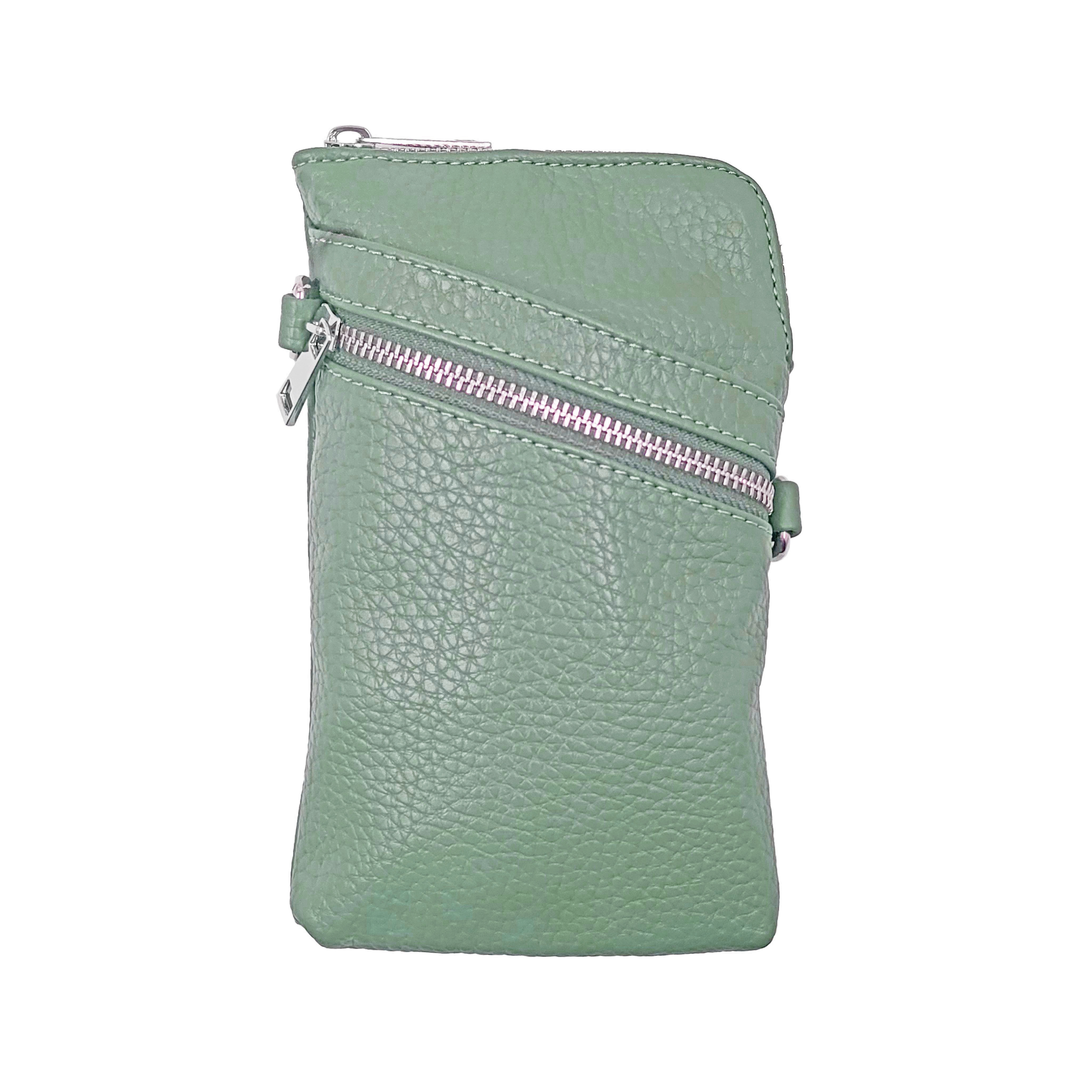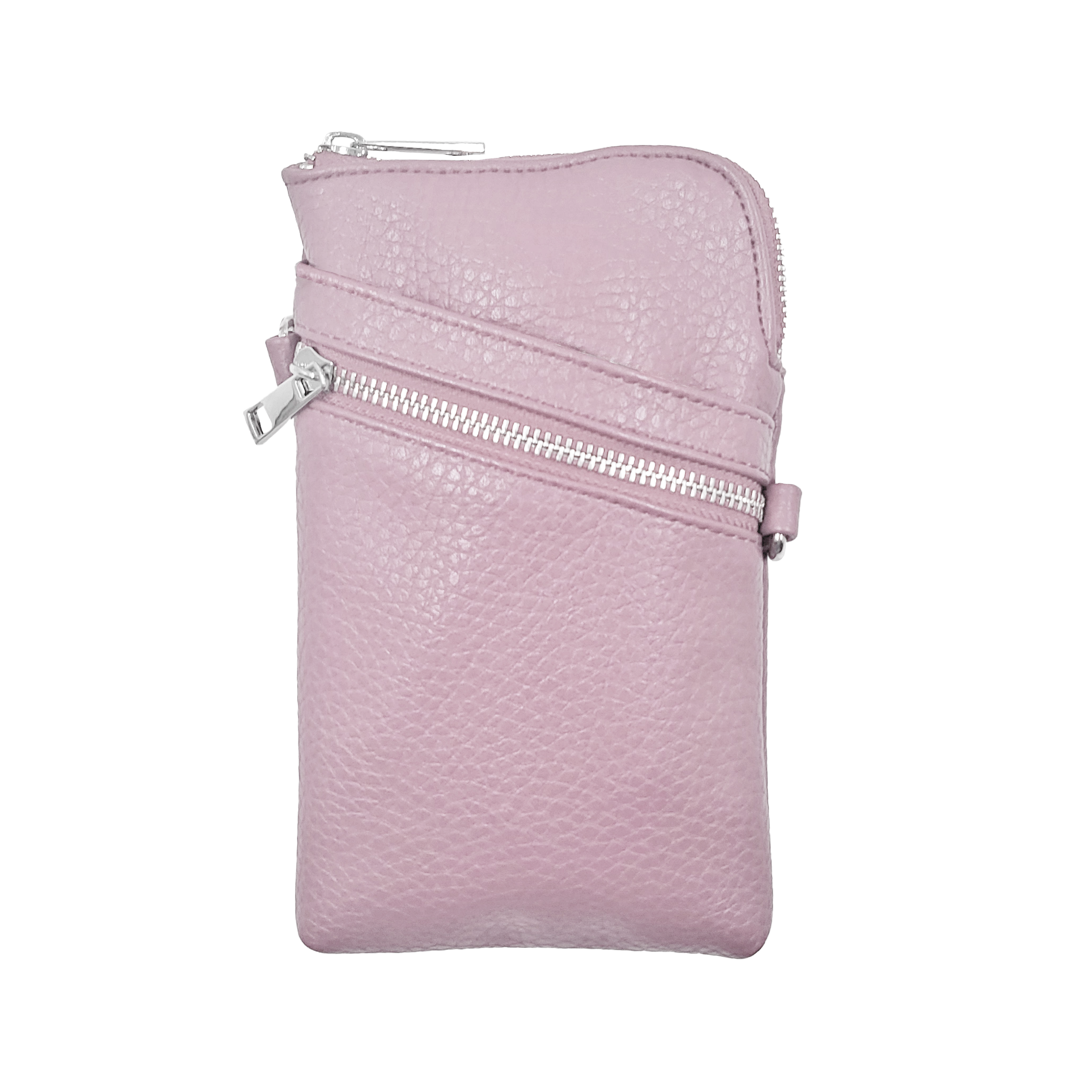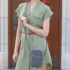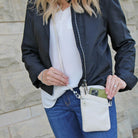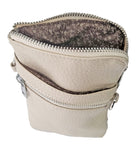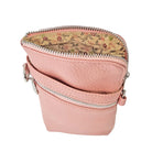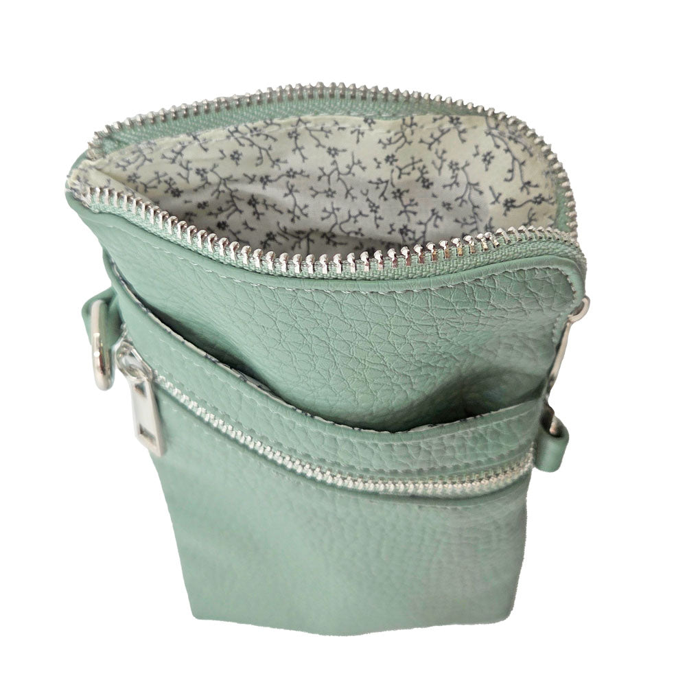 We do crossbody bags best and this new one is perfect! Metal zippers accent a grain vegan leather. Front zipper pocket can store a small card sleeve. Behind that, is an open pocket, large enough for most phones inside a case. The top zipper wraps around the side, giving you a wide opening to access your belongings easily.
