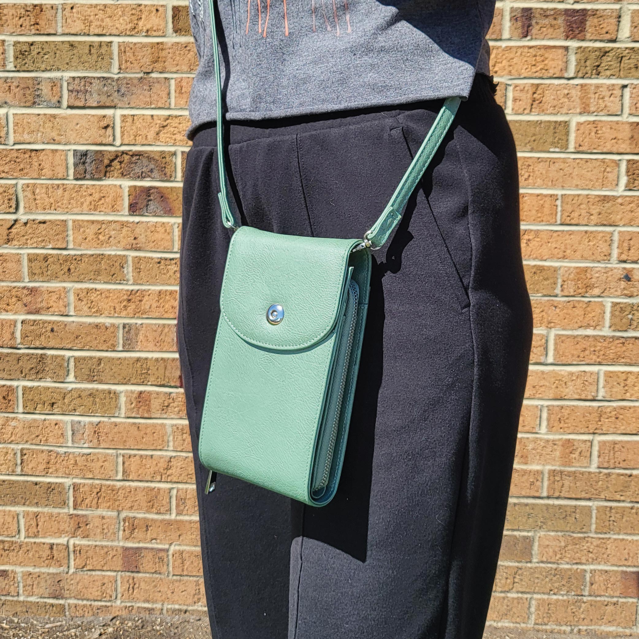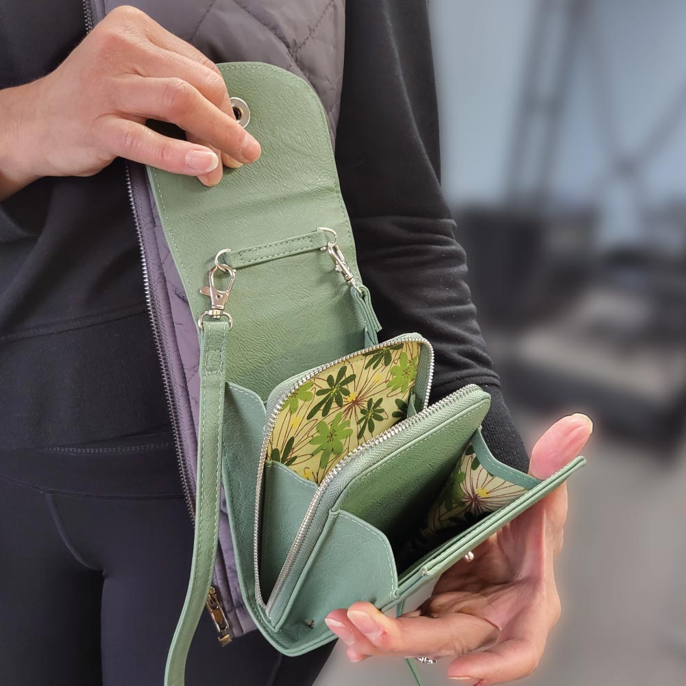 SHE’S BACK! Our best selling Serena is back by popular demand. She looks small but is mighty. When you open the magnet closure flap, it will open like an accordian, offering 3 compartments for great organization. With a detachable strap, you can use this as a wallet or crossbody.