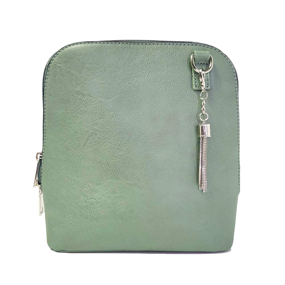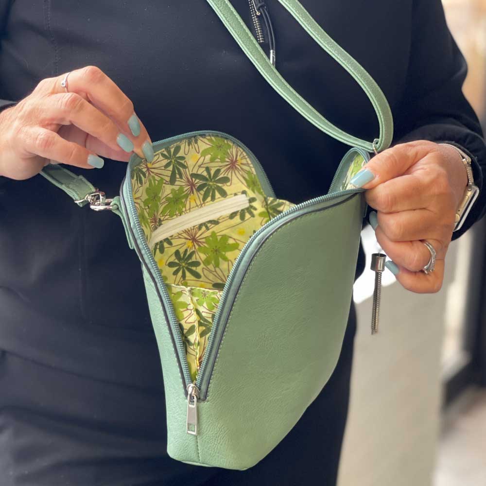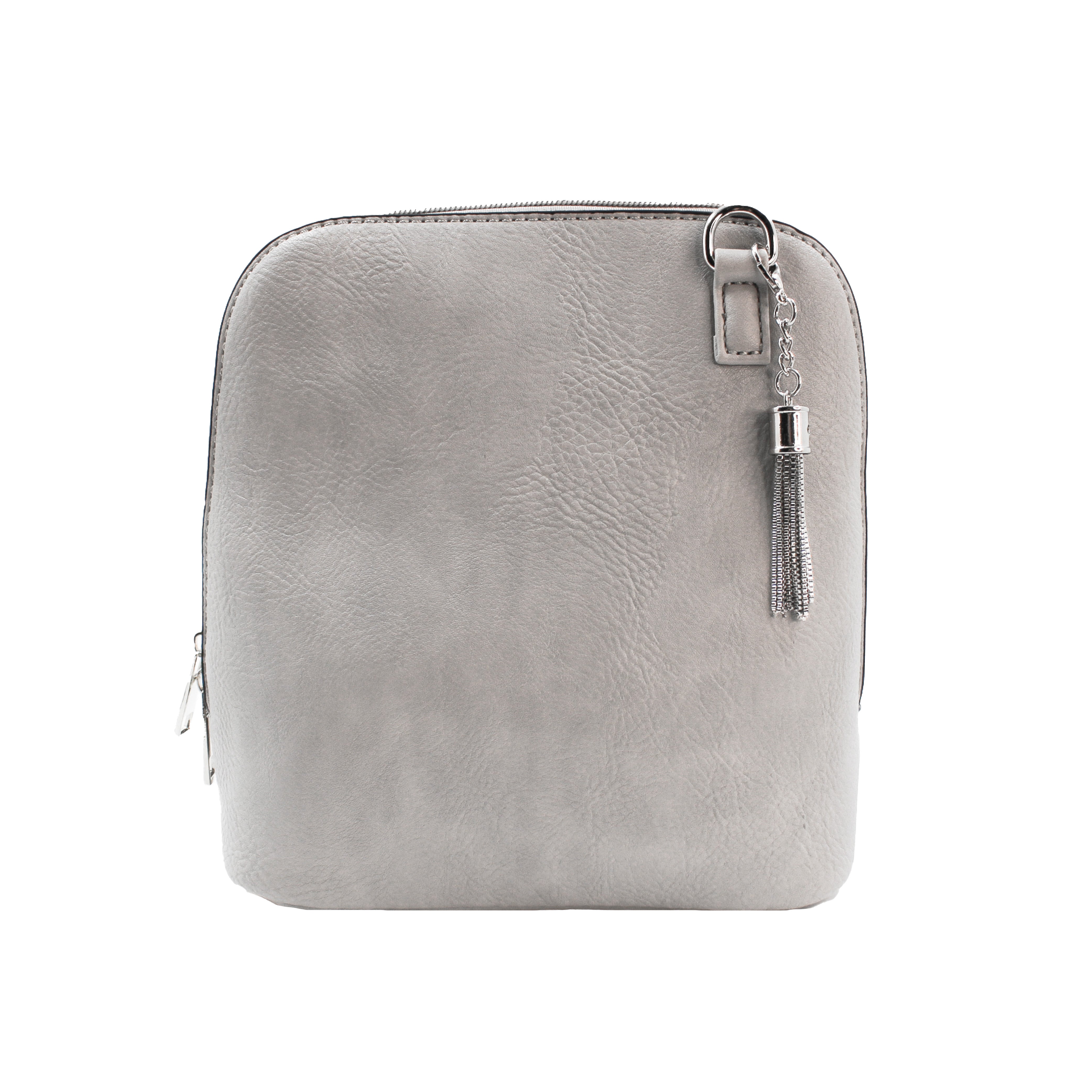 It may look small, but you will be pleasantly surprised to see how wide this bag opens. The zipper opens on all three sides giving this petite crossbody great accessibility and enough room to hold more than just the essentials! The metal tassel adds just the right finish!