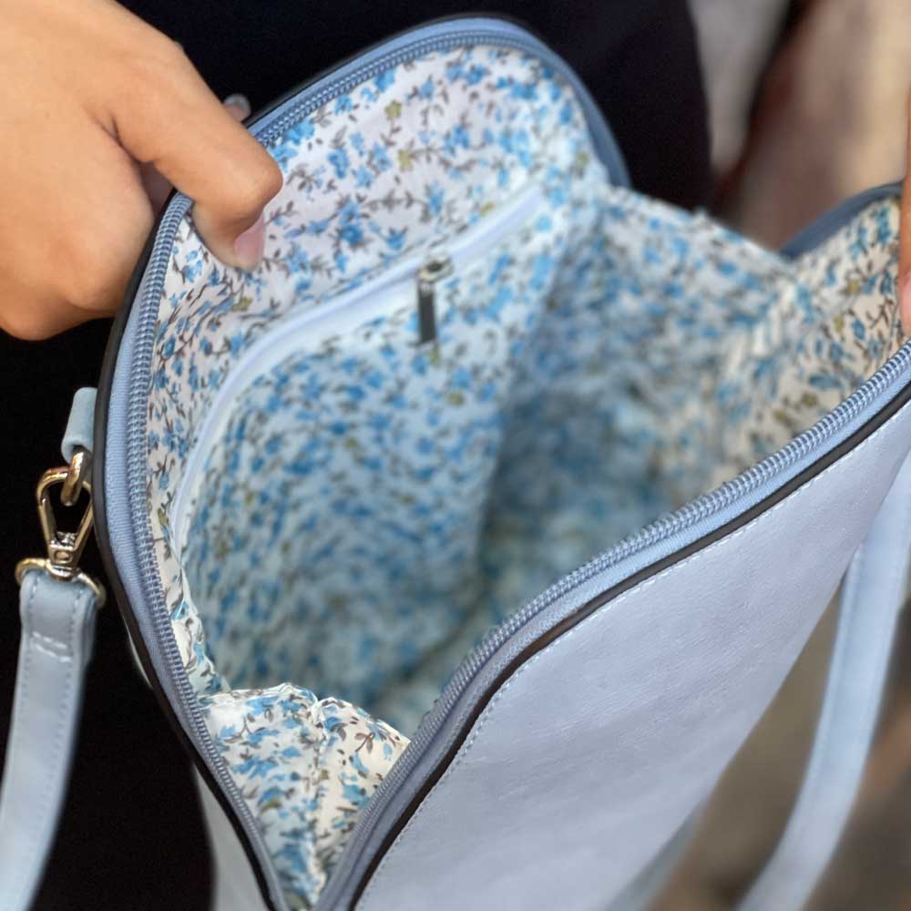 - Lined with a ditsy floral print to match vegan leather