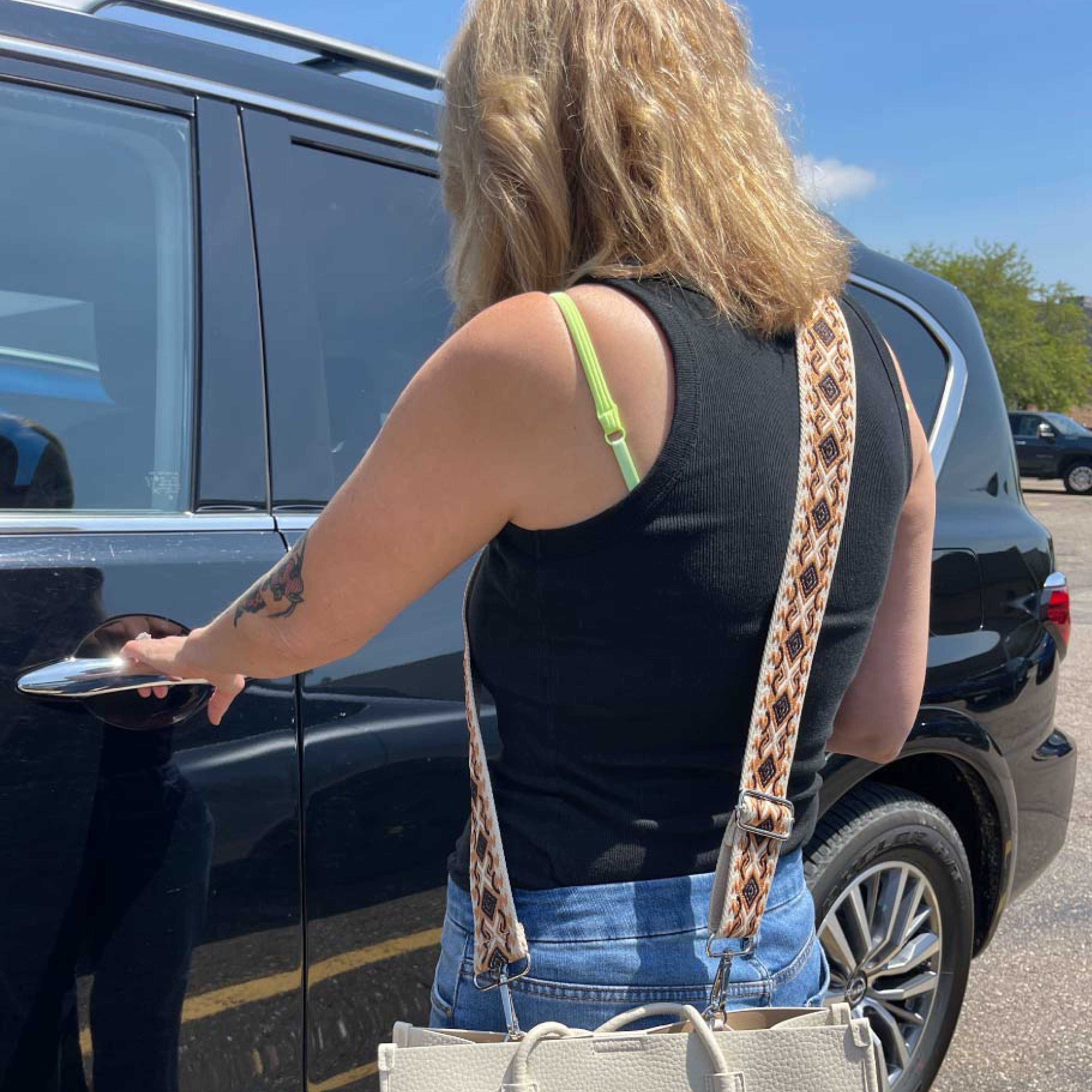 Change the look of any handbag! These stylish "guitar straps" add color and fashion to your bag, big or small. Adjustable down to 29 inches for a belt bag, or 52 inches at its longest length for a crossbody strap. You can also use this strap when traveling. Attached to your luggage, your bag will stand out when searching the conveyor belt! Or, use it to strap your carry on to your checked luggage for easy travel. The newest trend in handbags, at a fraction of the designer price!