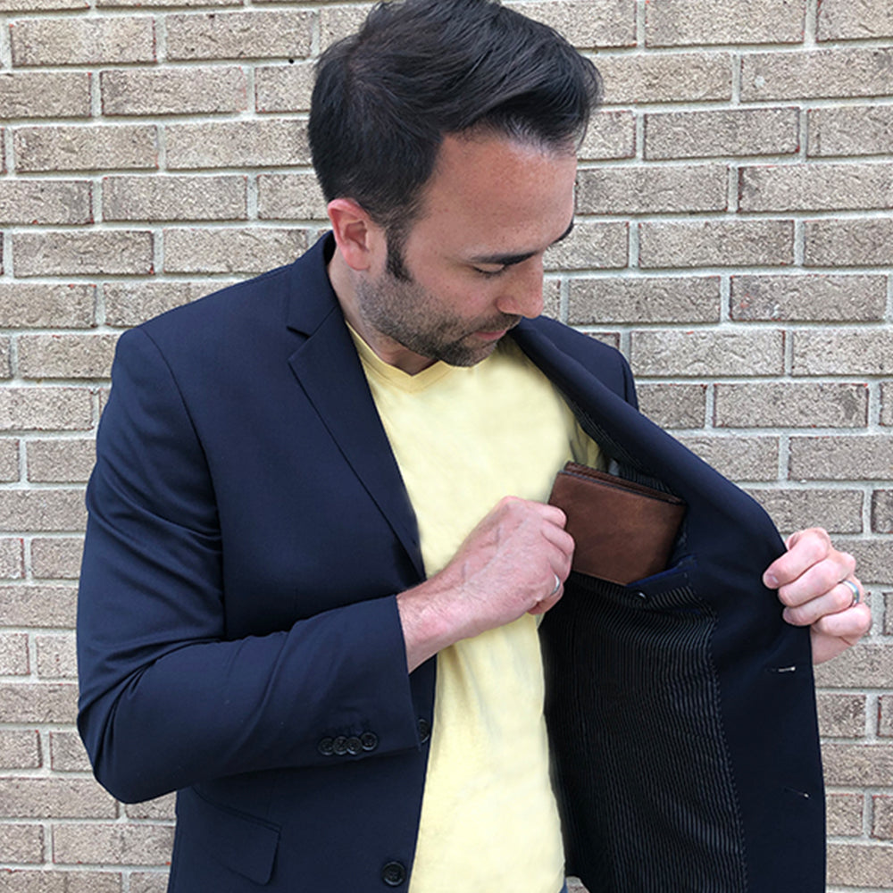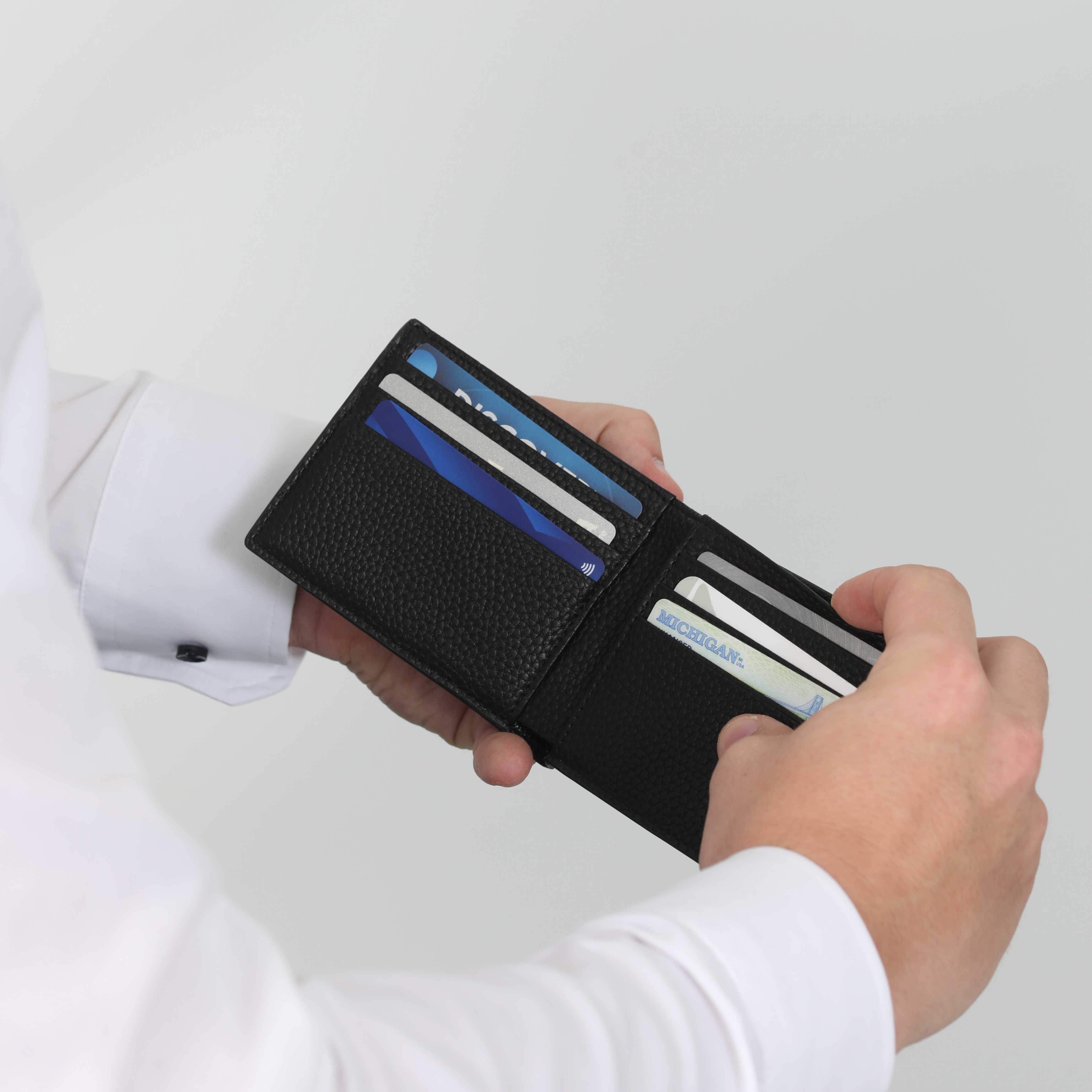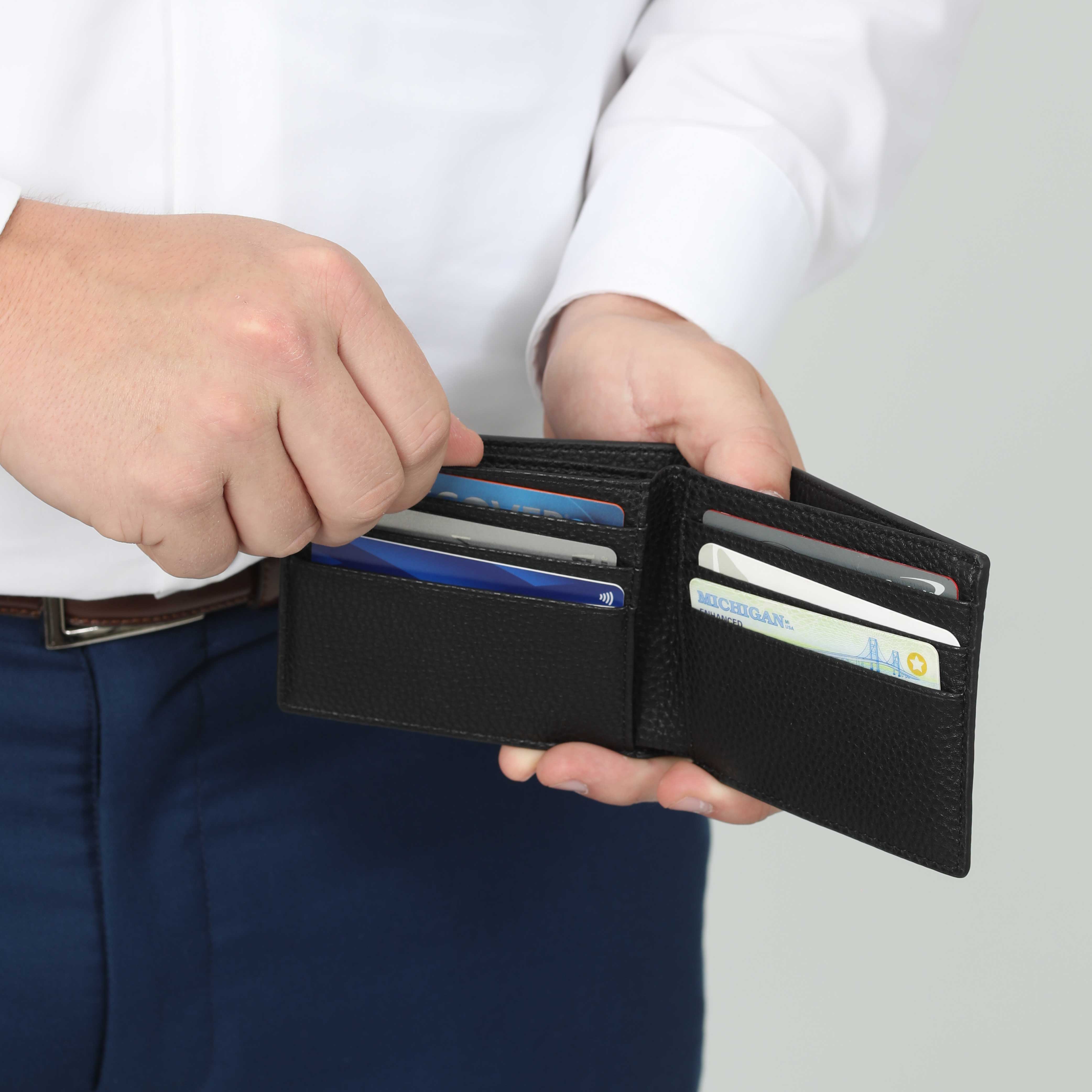 - Bi-fold wallet with (6) RFID protected card sleeves