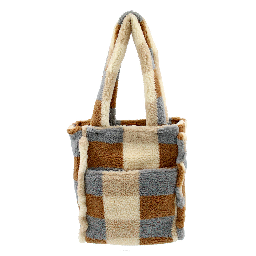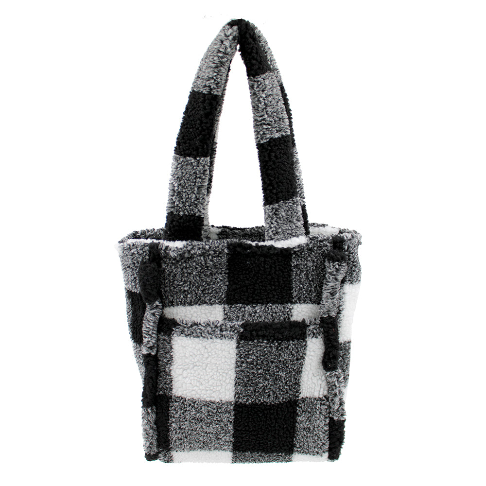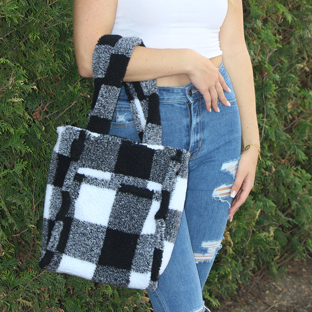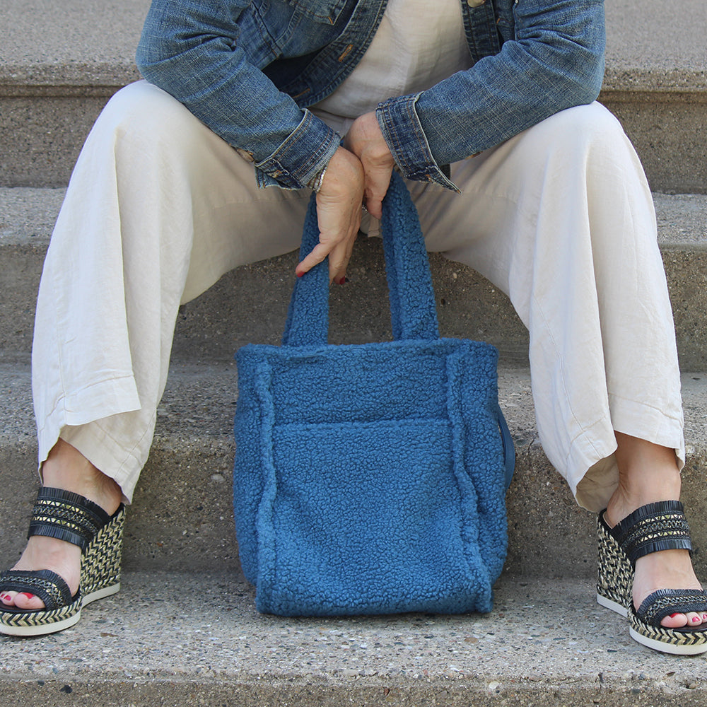 Long adjustable PU material strap. Sherpa material. Snap Closure. Interior zipper pocket and 3 built-in RFID protected card sleeves.