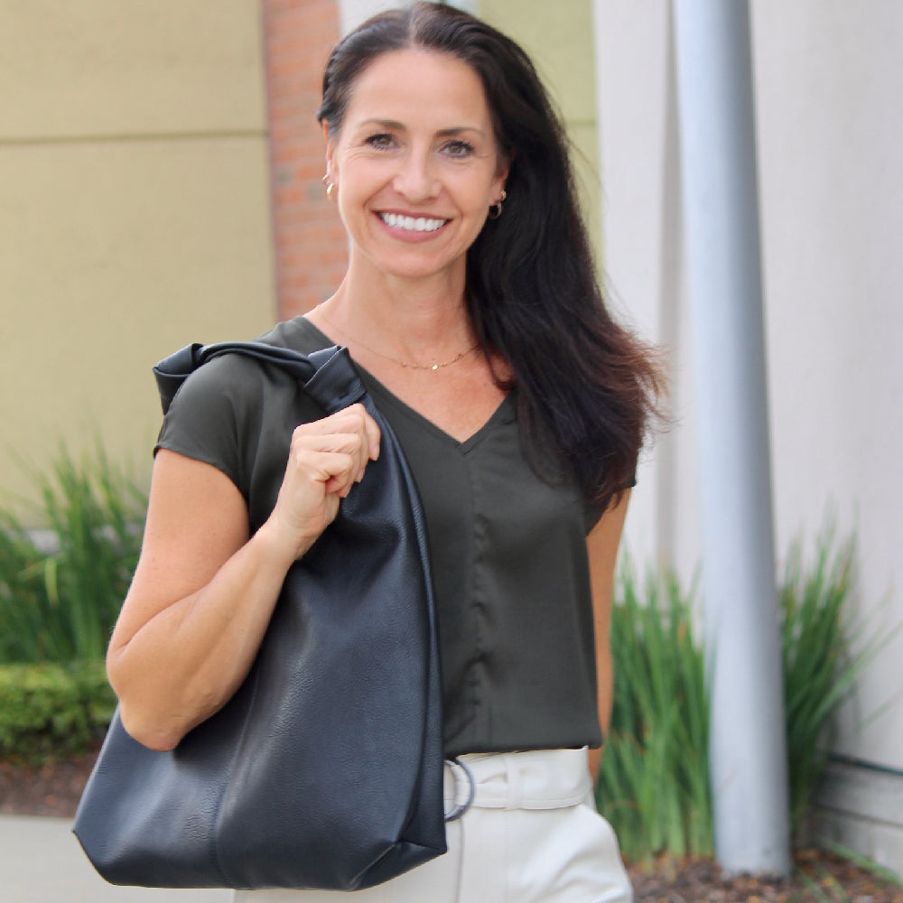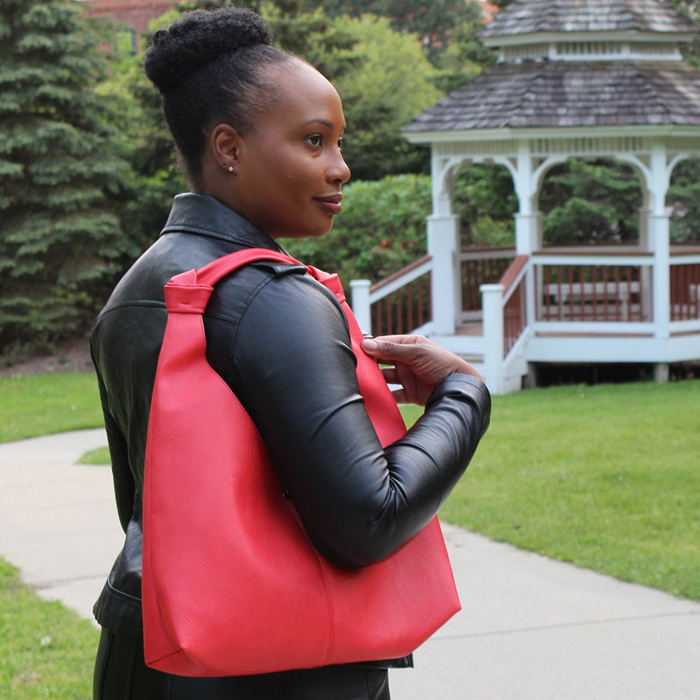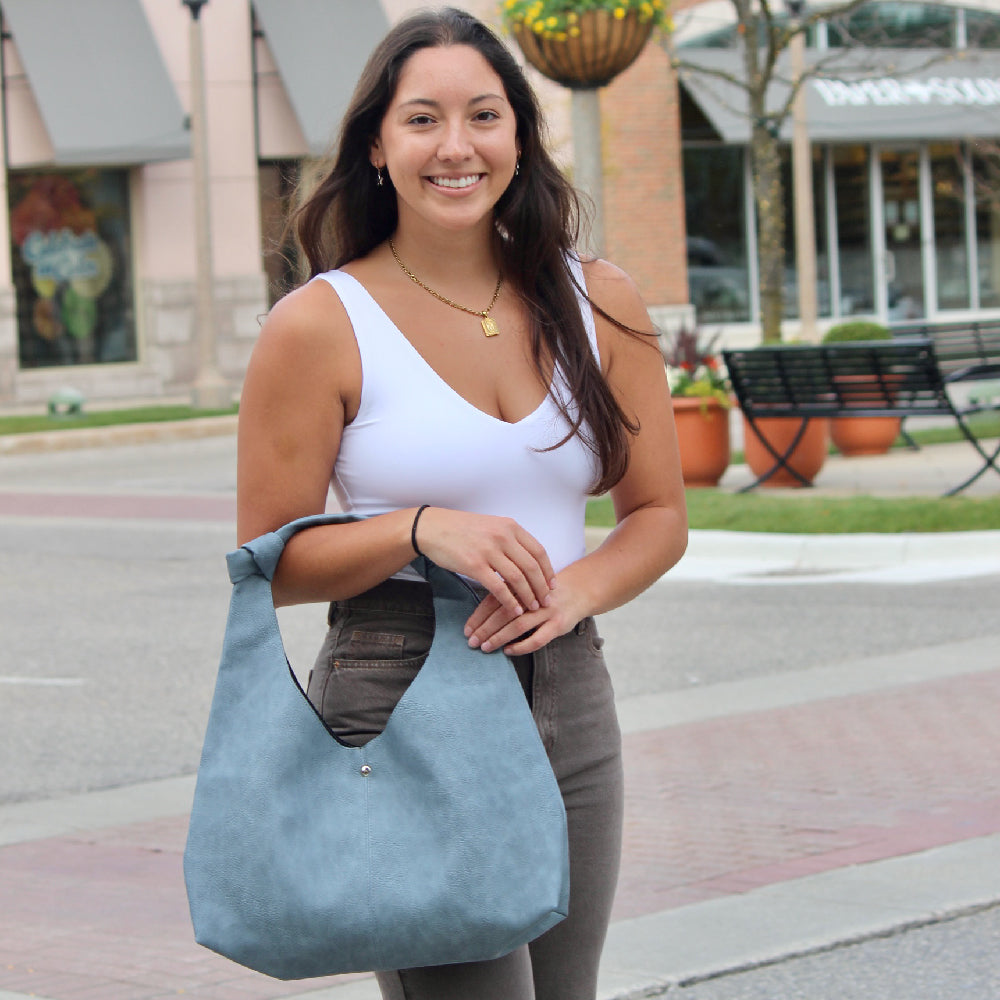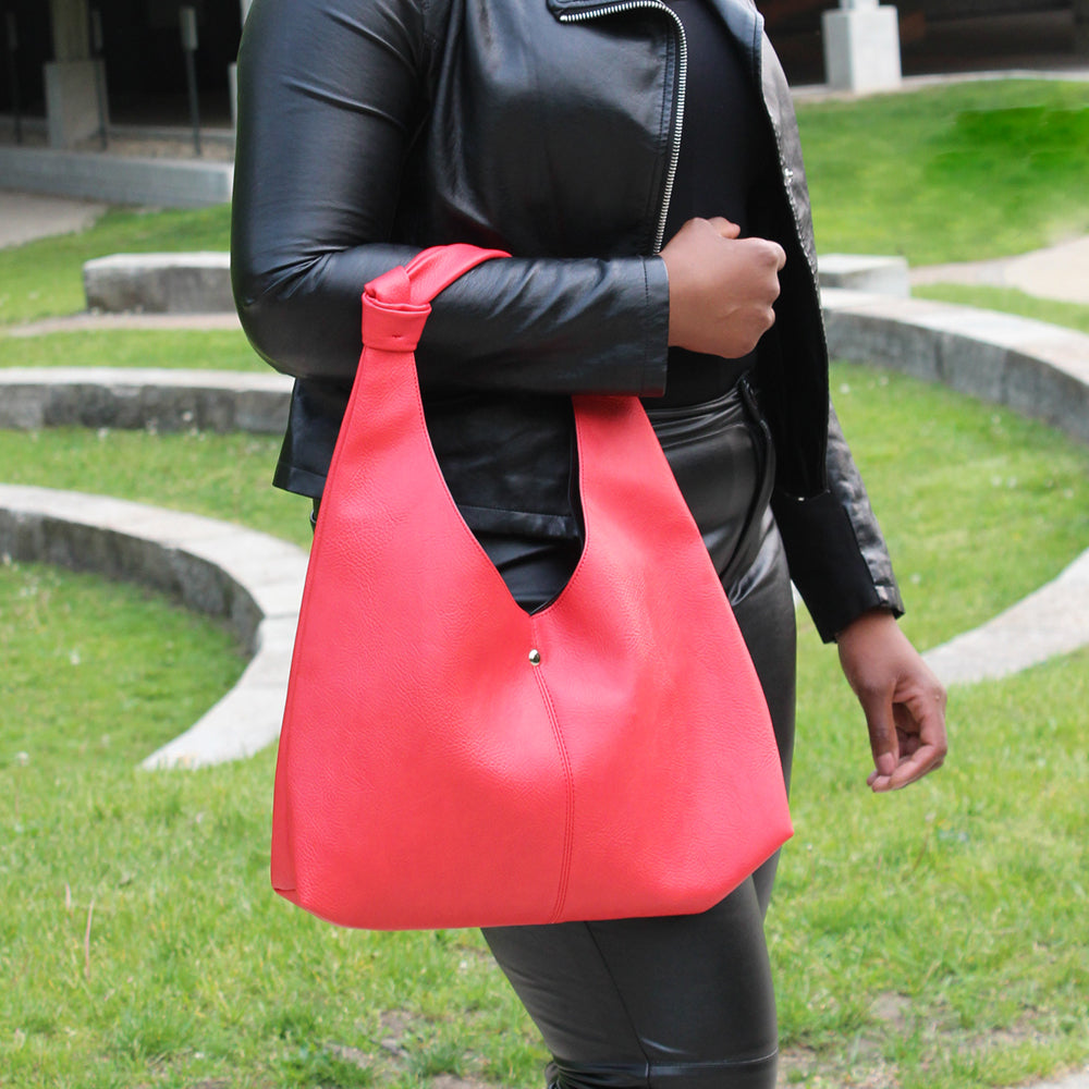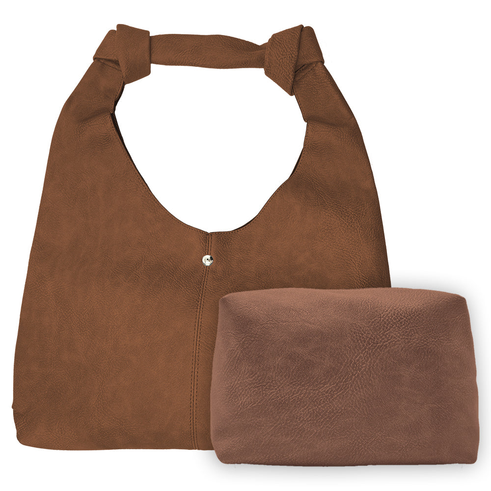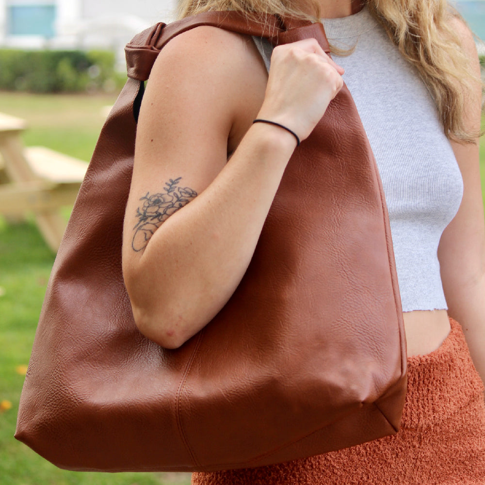 Lot of pockets and compartments! Two open pockets on the outside, two usable zipper pockets on the front. Use as a hobo bag, it's large enough inside to carry a water bottle, phone and so much more.