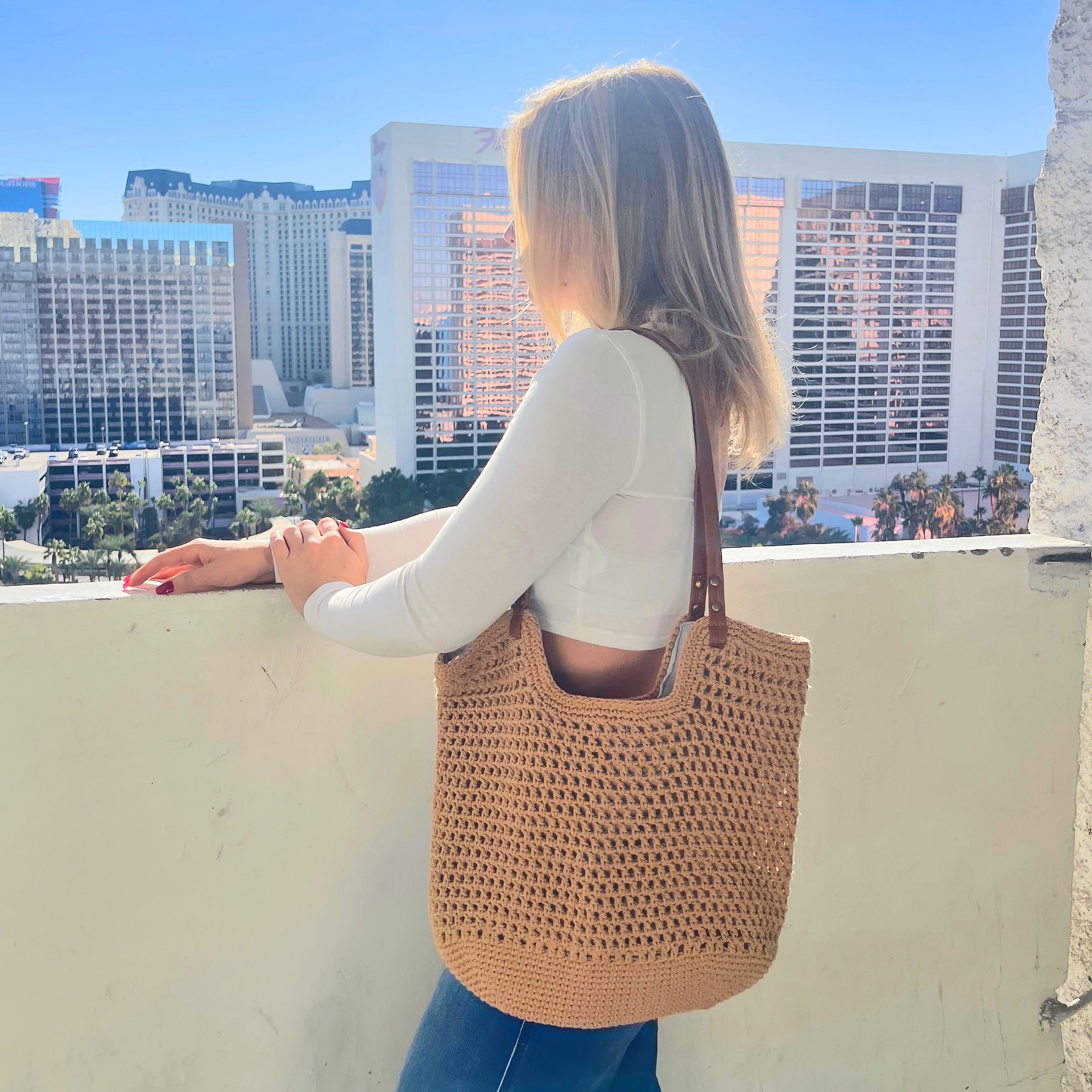 It’s the perfect blend of casual knit and luxurious vegan leather. Our knit tote is spacious enough to carry all your essentials while its neutral tones make it a versatile match for your entire spring collection.