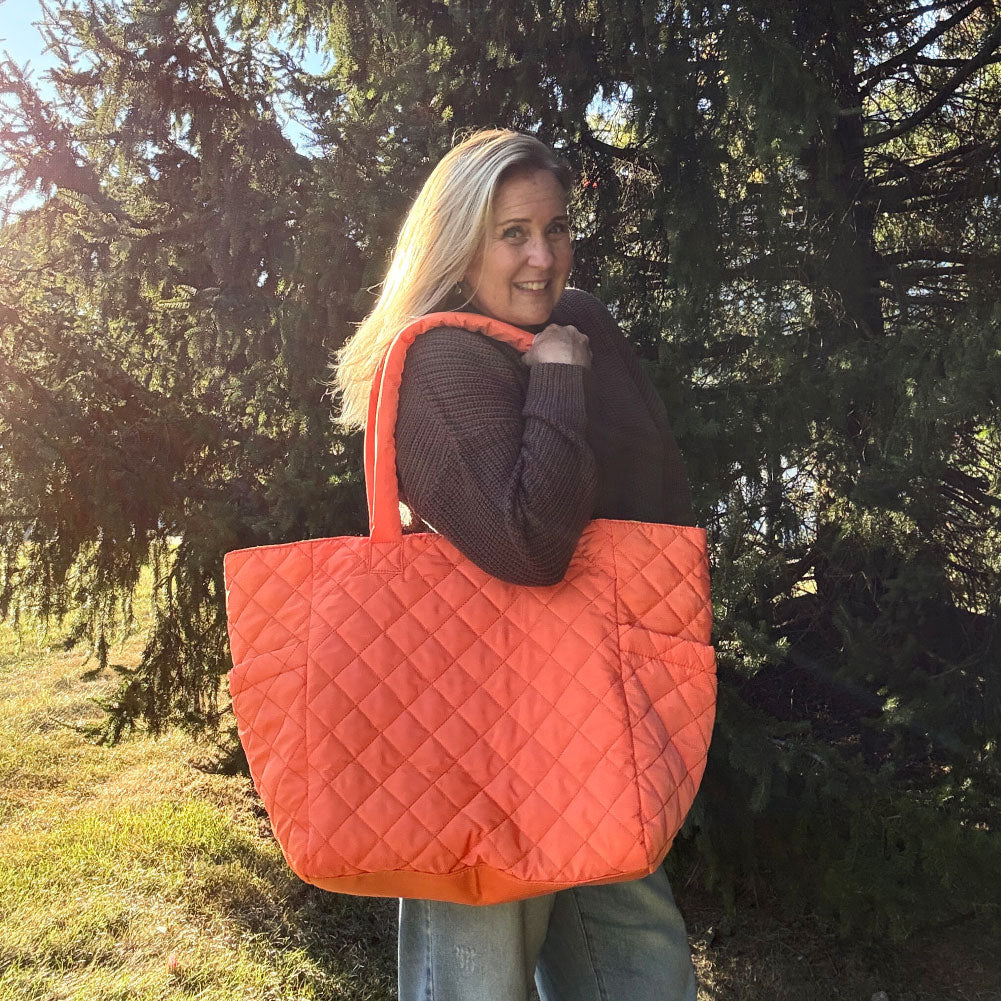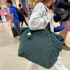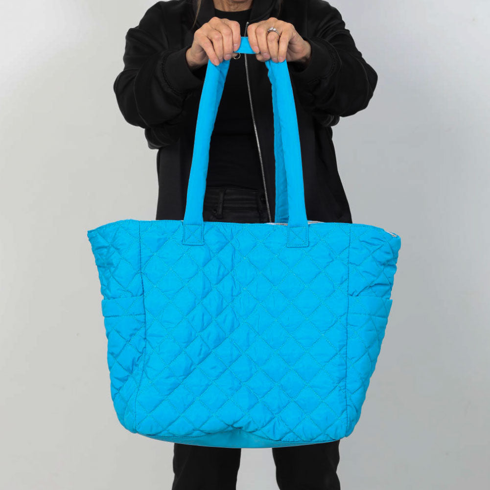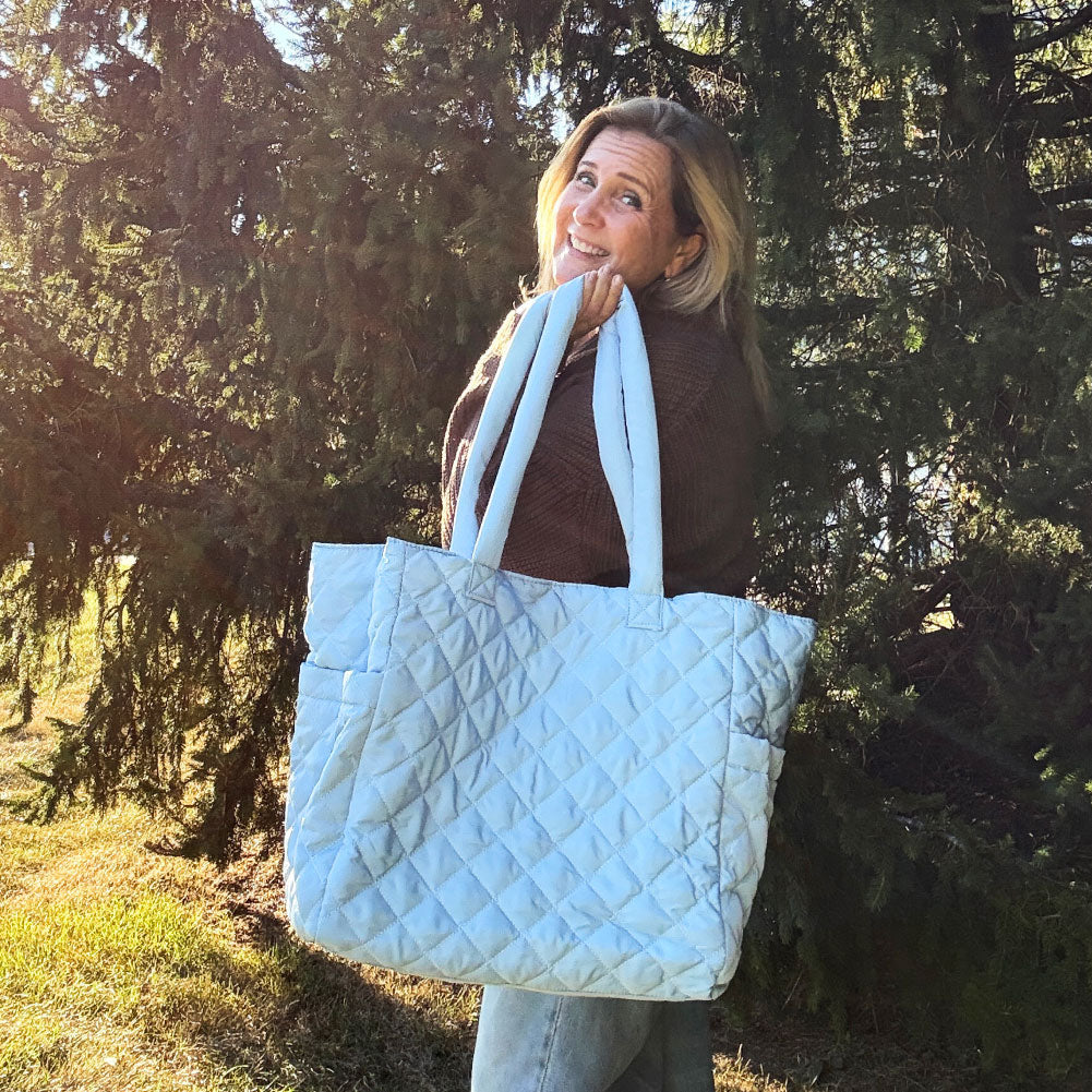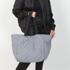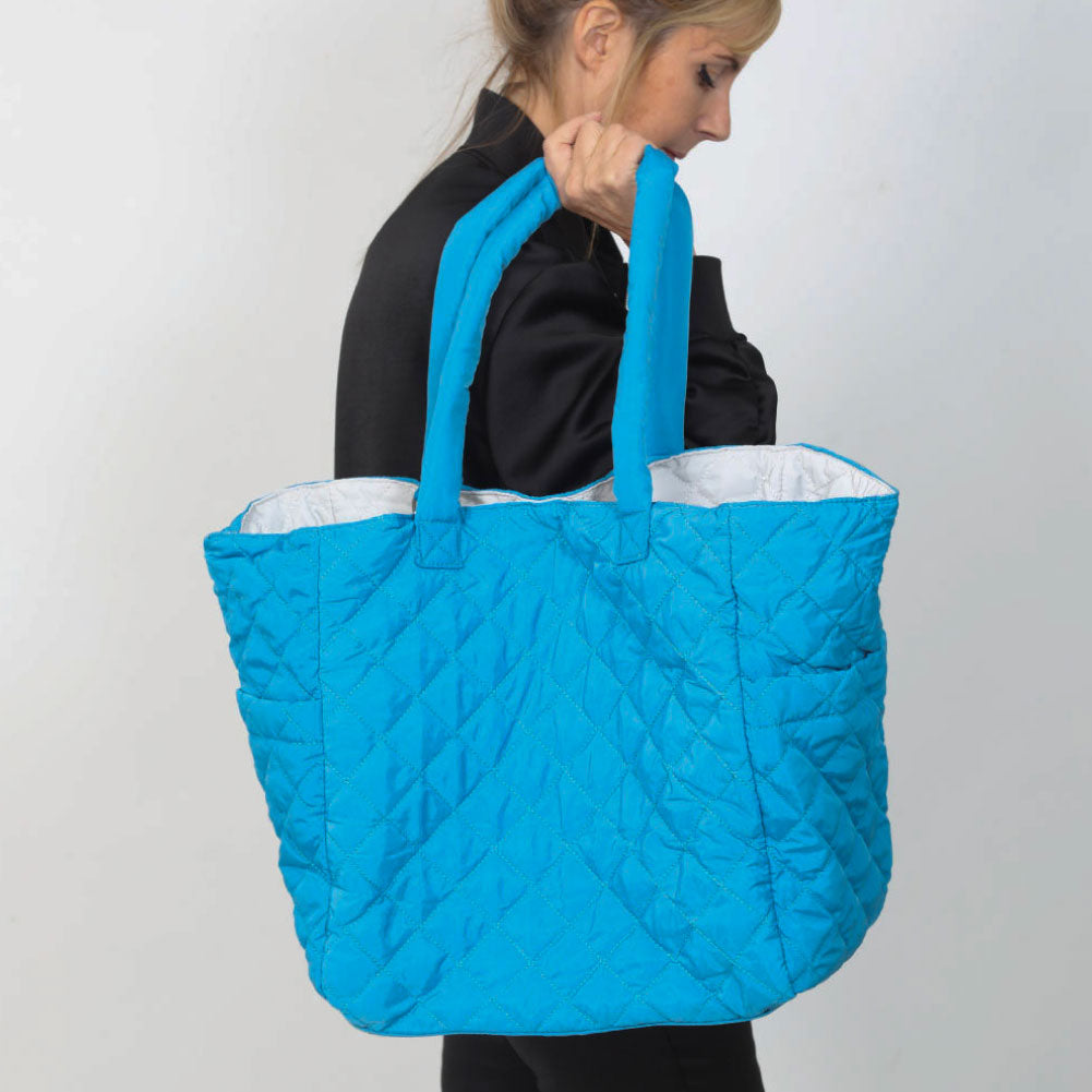 NEW COLLECTION! This oversized quilted nylon tote is the perfect travel companion, combining functionality and style. Crafted from soft, lightweight nylon, it offers a durable yet comfortable carry for all your essentials. The spacious interior is ideal for packing everything from a laptop to a change of clothes, making it a versatile choice for both short trips and long journeys. Featuring convenient magnet-close pockets, it ensures your belongings stay secure while remaining easily accessible. The chic quilted design adds a touch of sophistication, blending seamlessly with any outfit. Whether you're heading to the airport or exploring a new city, this tote is designed to keep you organized and looking effortlessly stylish.