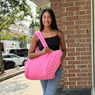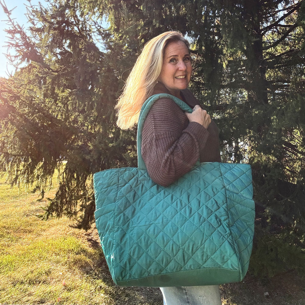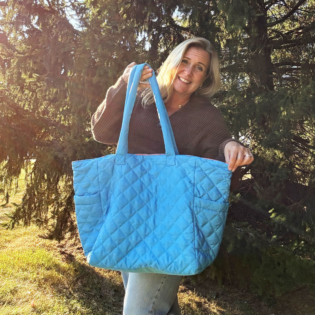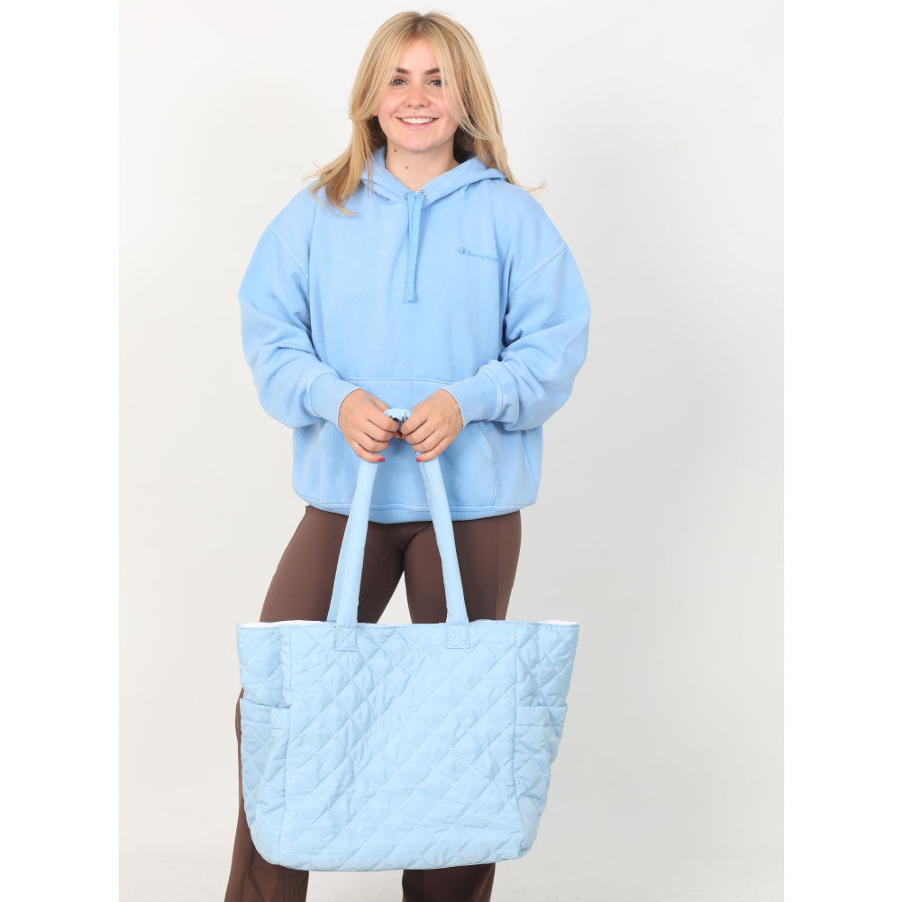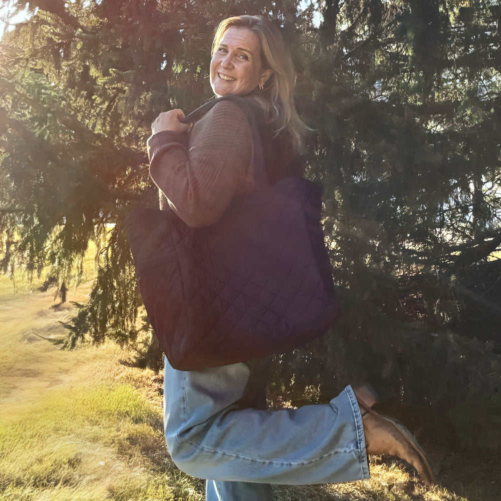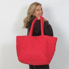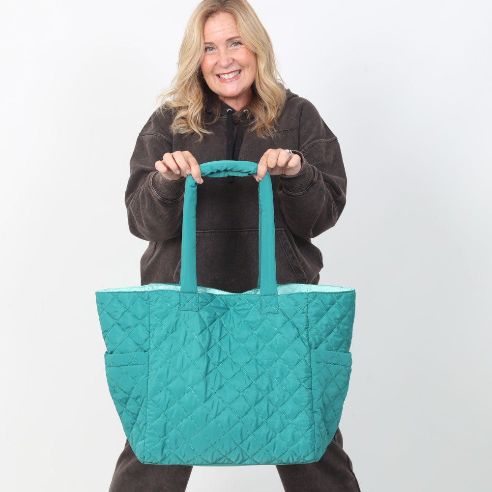 NEW COLLECTION! This oversized quilted nylon tote is the perfect travel companion, combining functionality and style. Crafted from soft, lightweight nylon, it offers a durable yet comfortable carry for all your essentials. The spacious interior is ideal for packing everything from a laptop to a change of clothes, making it a versatile choice for both short trips and long journeys. Featuring convenient magnet-close pockets, it ensures your belongings stay secure while remaining easily accessible. The chic quilted design adds a touch of sophistication, blending seamlessly with any outfit. Whether you're heading to the airport or exploring a new city, this tote is designed to keep you organized and looking effortlessly stylish.
