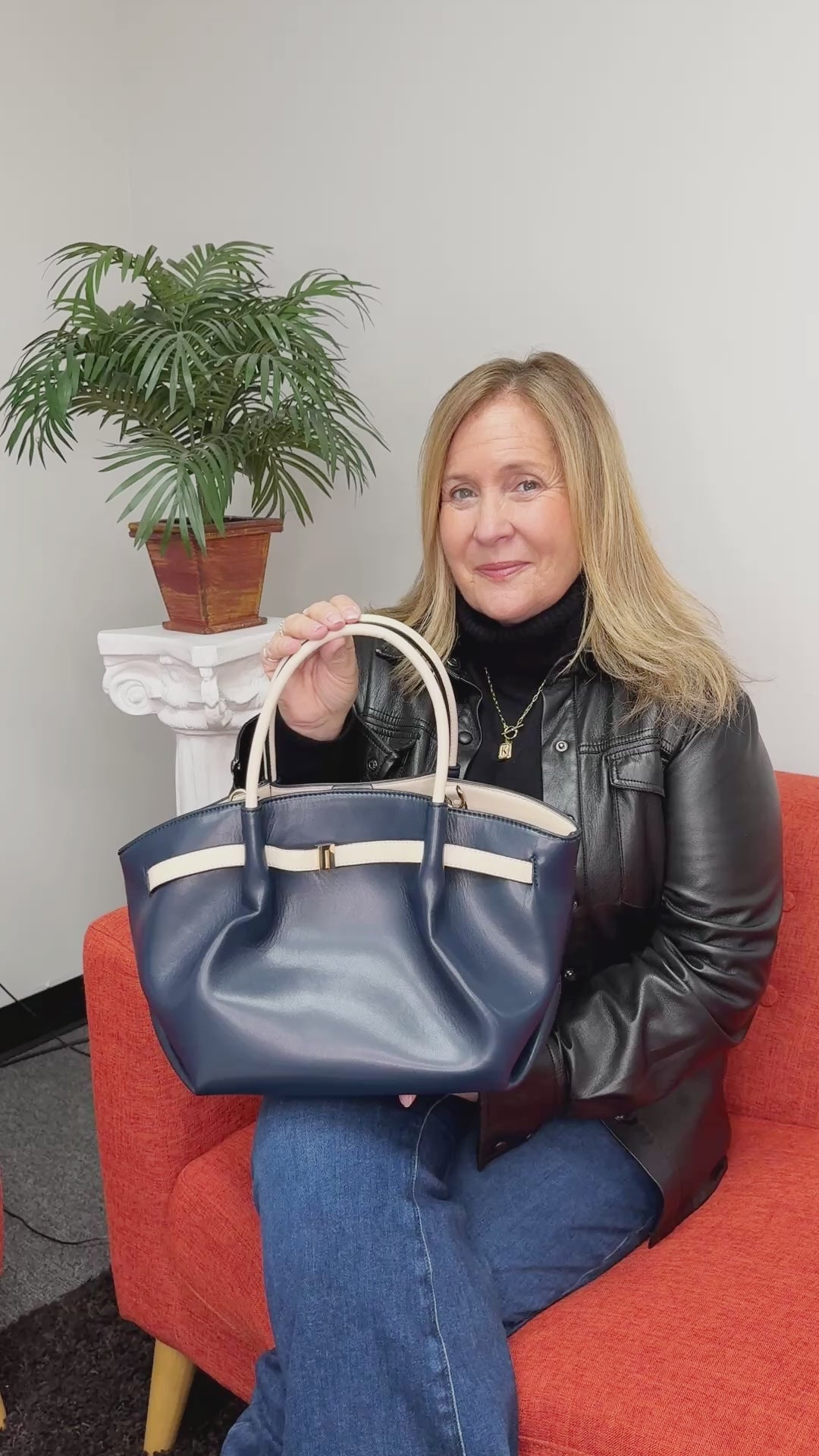 Smooth leather tote, satchel or hands-free using the detachable crossbody strap. A top magnet closure, three built-in RFID-protected card sleeves and a secure zipper pocket.