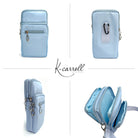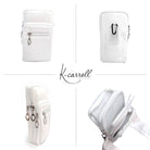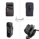Adjustable nylon strap. 3 separate zipper compartments. Zipper top closure. Our nylon material is lightweight and easy to keep clean with a damp cloth.
