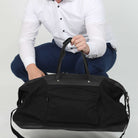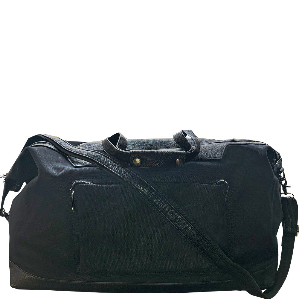 Perfect for the weekend car trip, carry-on bag or even a gym bag - when you need to bring just a little bit more than the basics. Combined vegan leather and canvas - the vegan leather on the bottom makes for easy cleaning. Two outside zippered compartments gives you quick access your phone, passport, whatever you need.