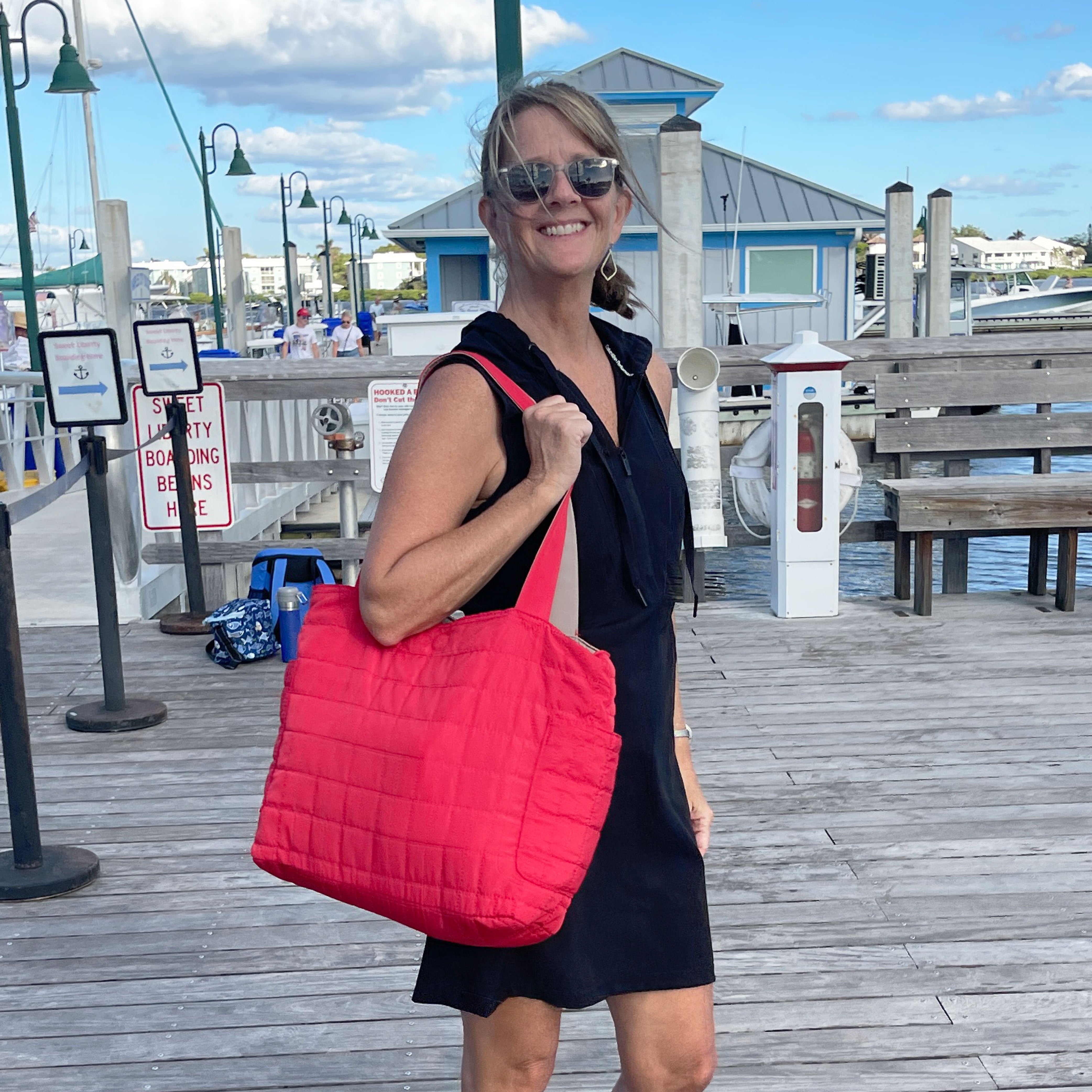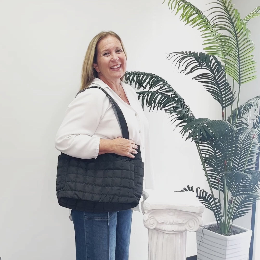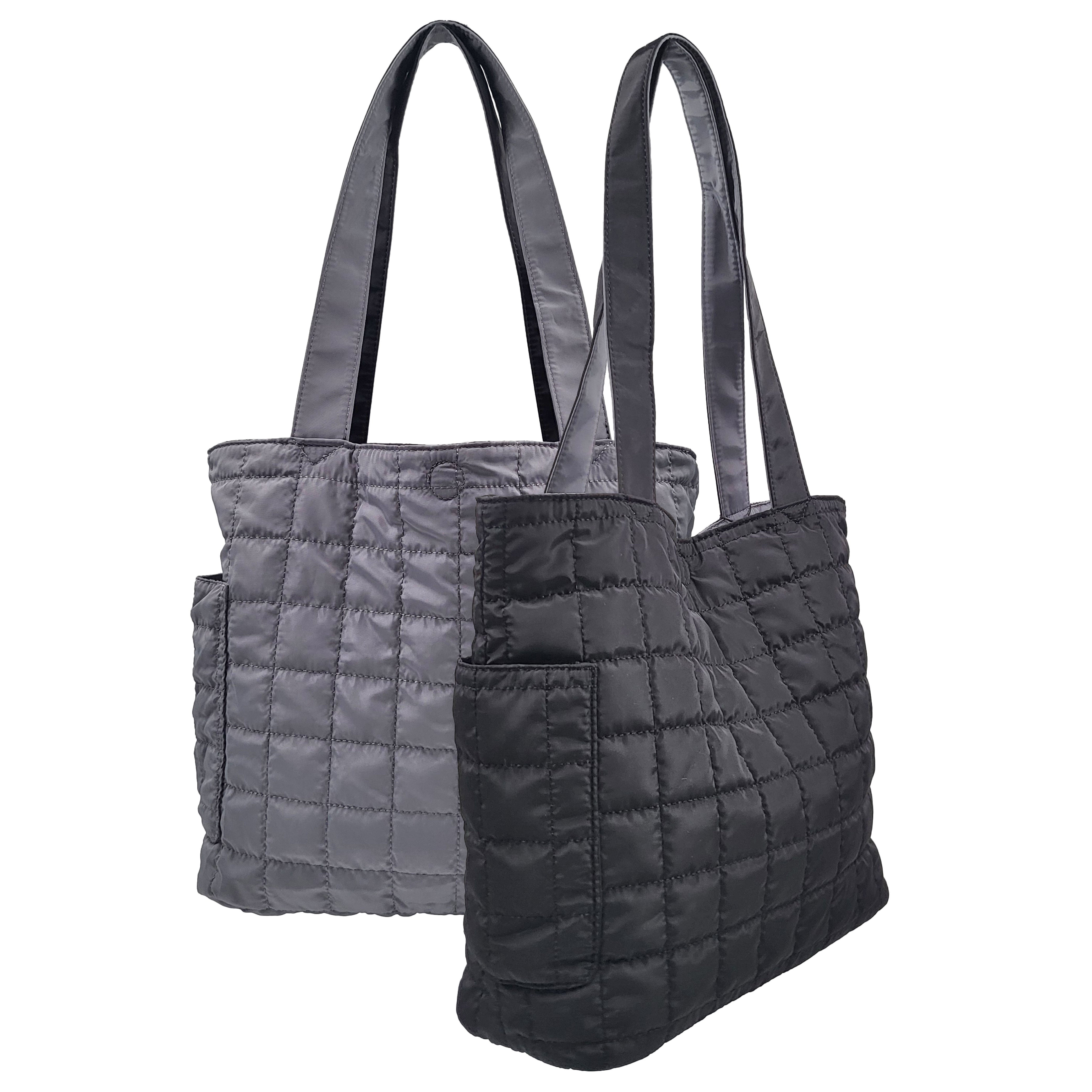 NEW COLLECTION! Our reversible tote is crafted from lightweight, durable nylon, making it a versatile and stylish choice for any occasion. Designed for convenience, it features both exterior and interior open pockets, perfect for quickly grabbing essentials like your phone or wallet. Spacious enough to accommodate your daily needs, it’s ideal for errands, a day at the pool, or as a reliable companion for travel. With its reversible design, this tote offers two looks in one, effortlessly blending practicality with modern style.