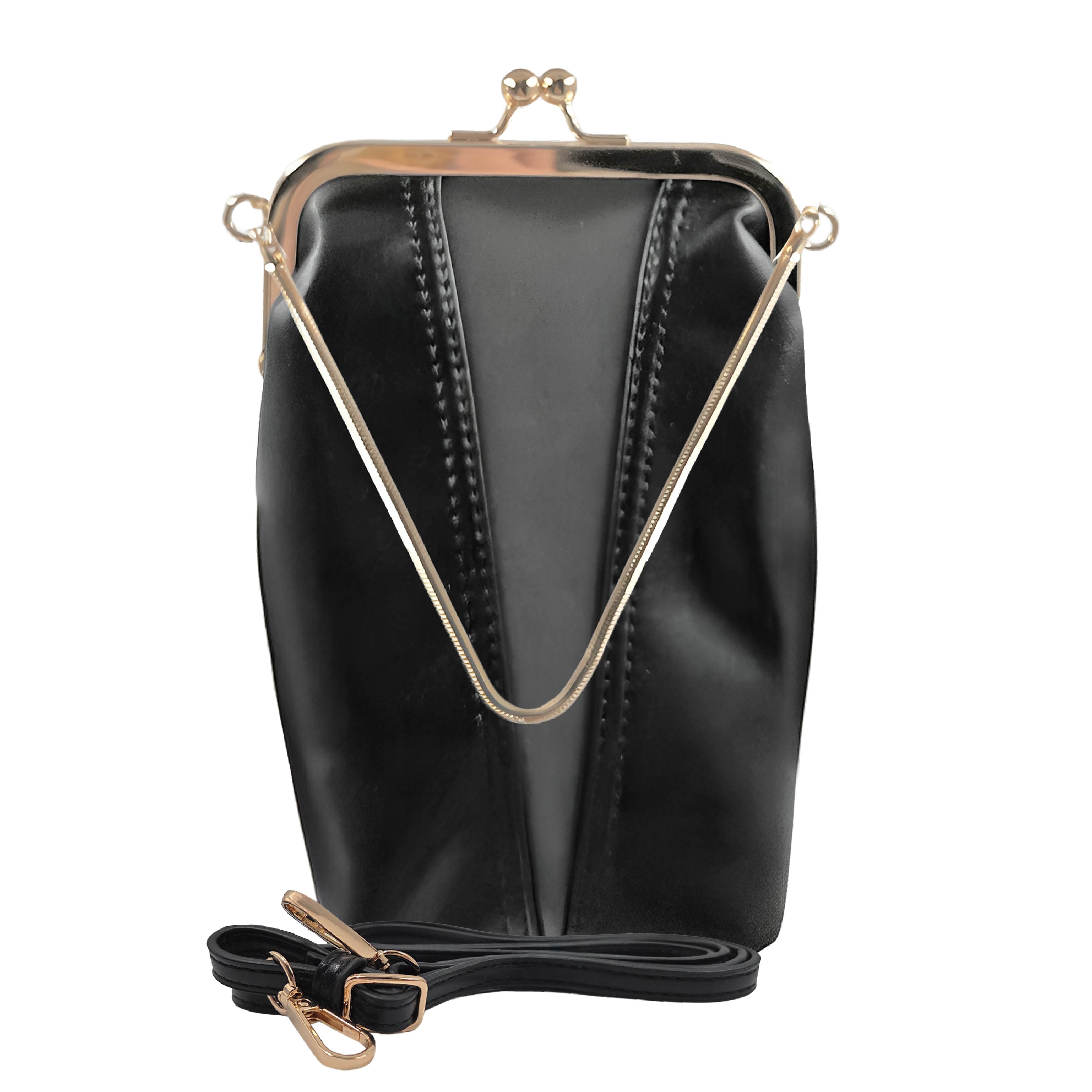 Featuring luxe gold hardware and a bold metal clutch strap detail. The metal clip closure delivers timeless appeal, while the detachable crossbody strap offers effortless conversion from clutch to crossbody wear. Three RFID-protected card sleeves and a structured divider.