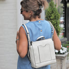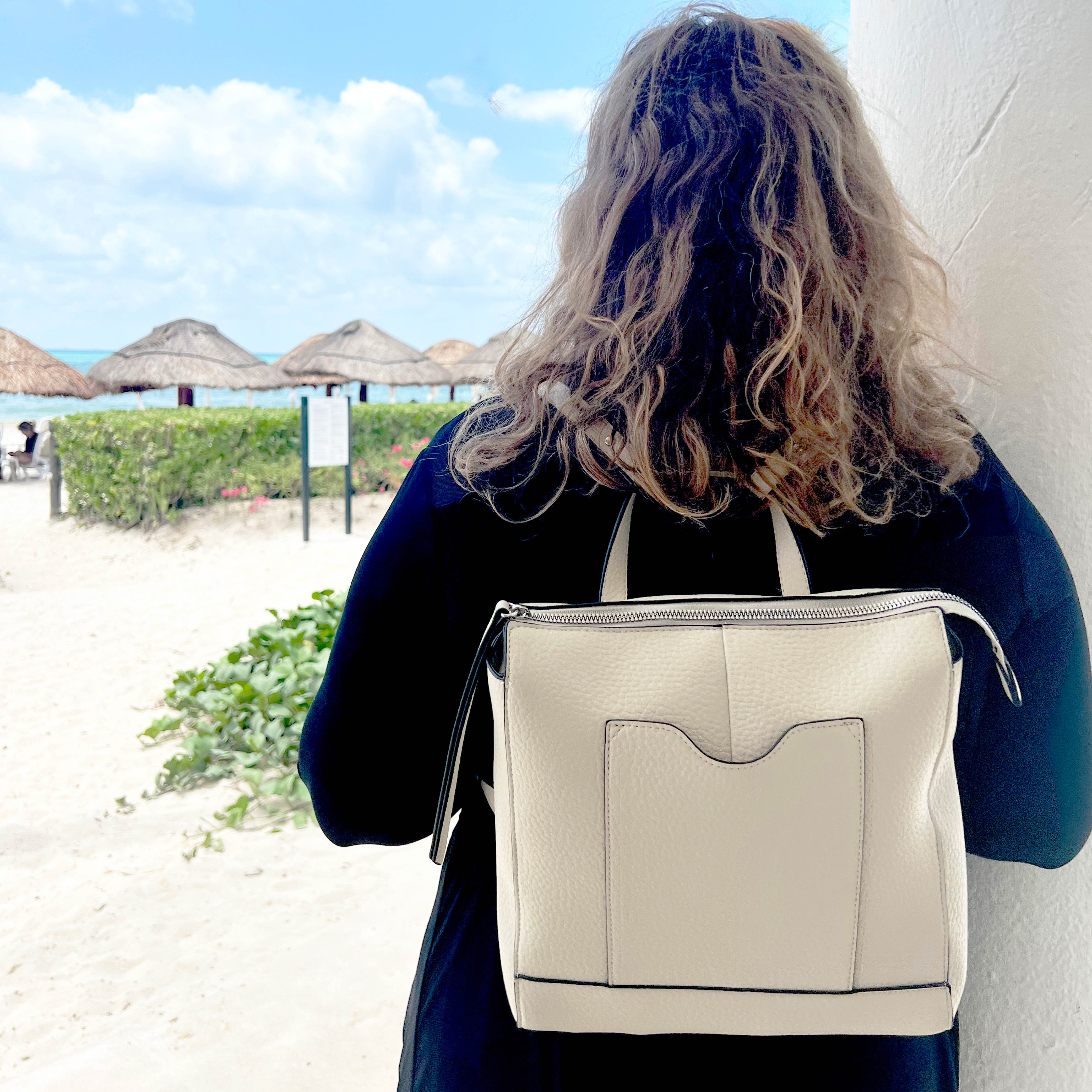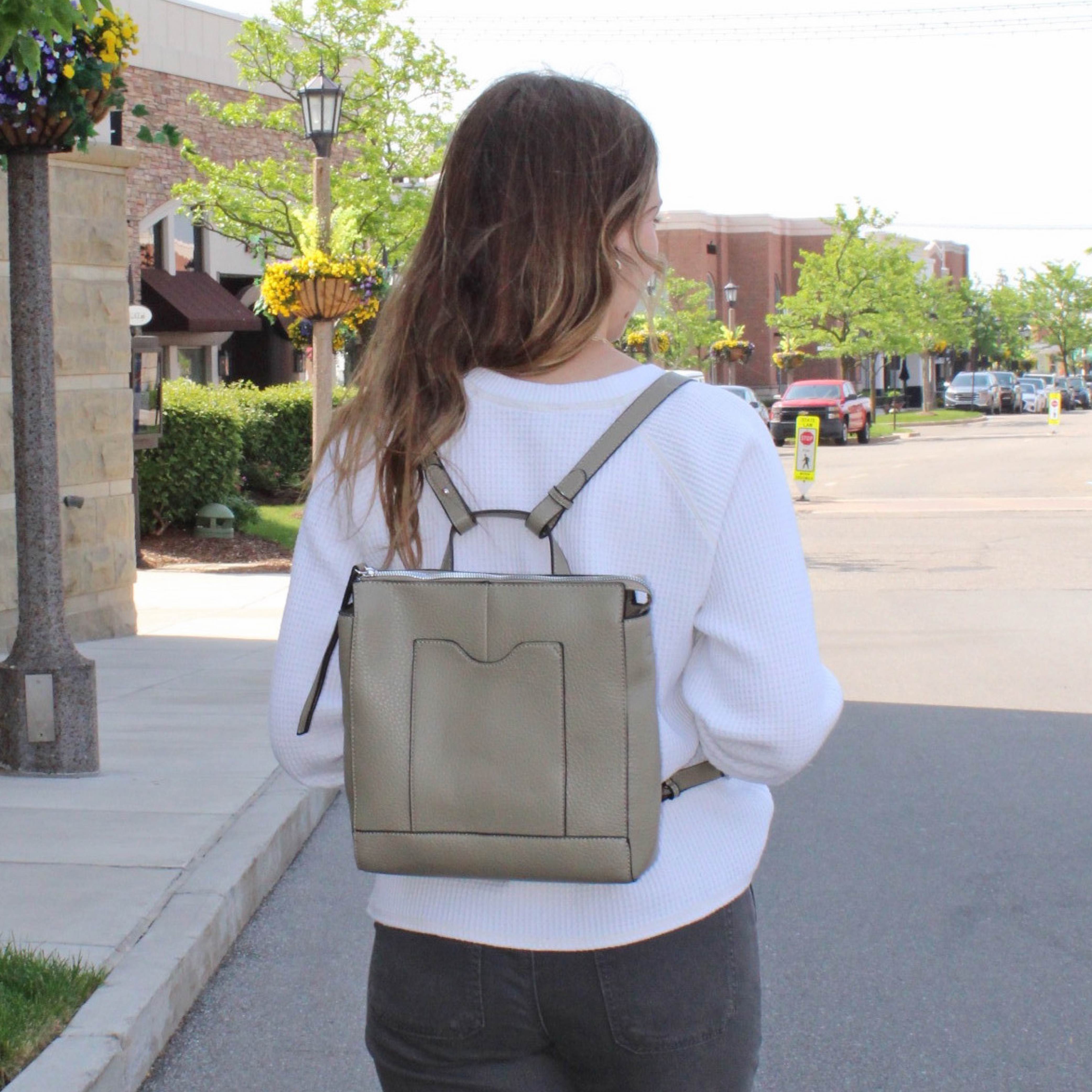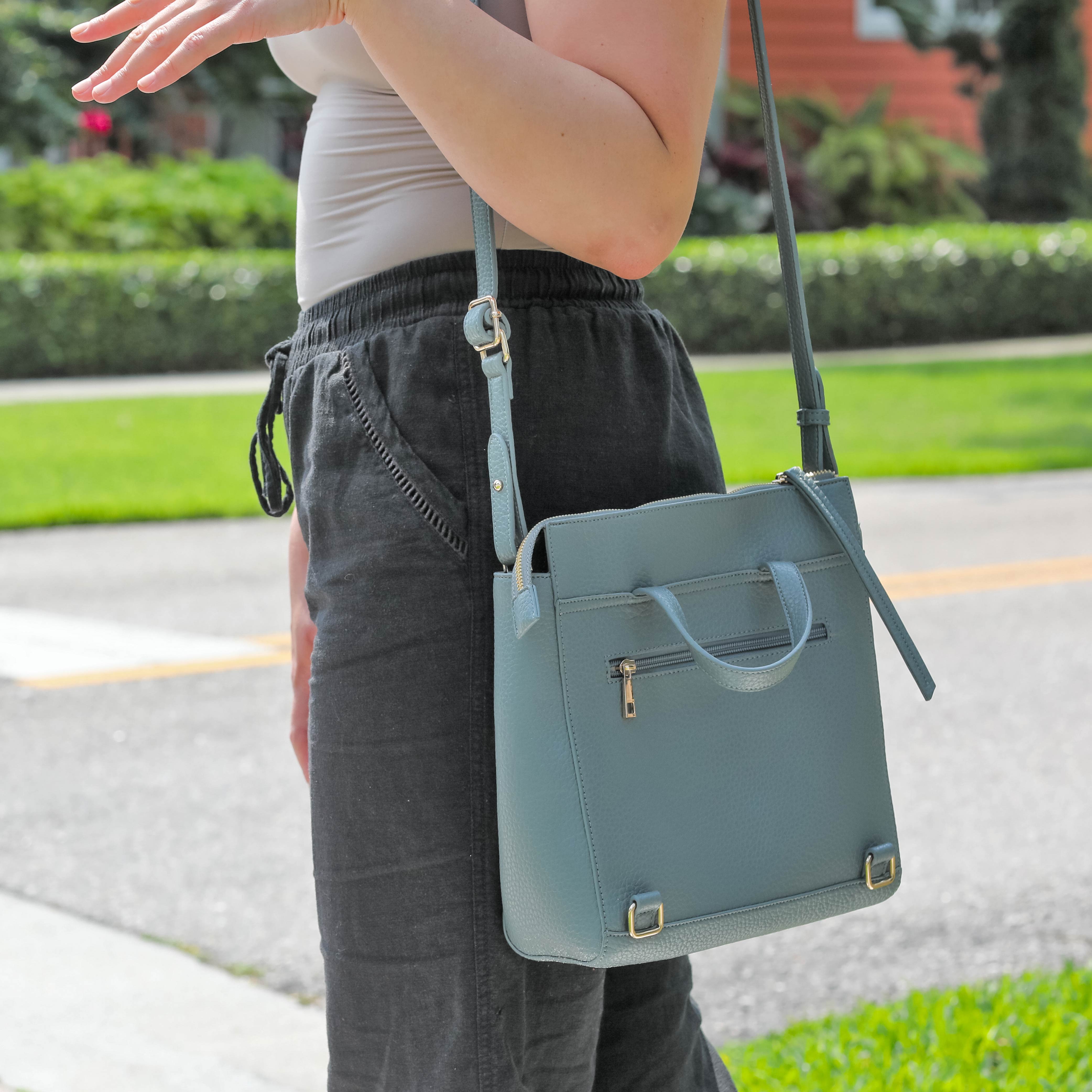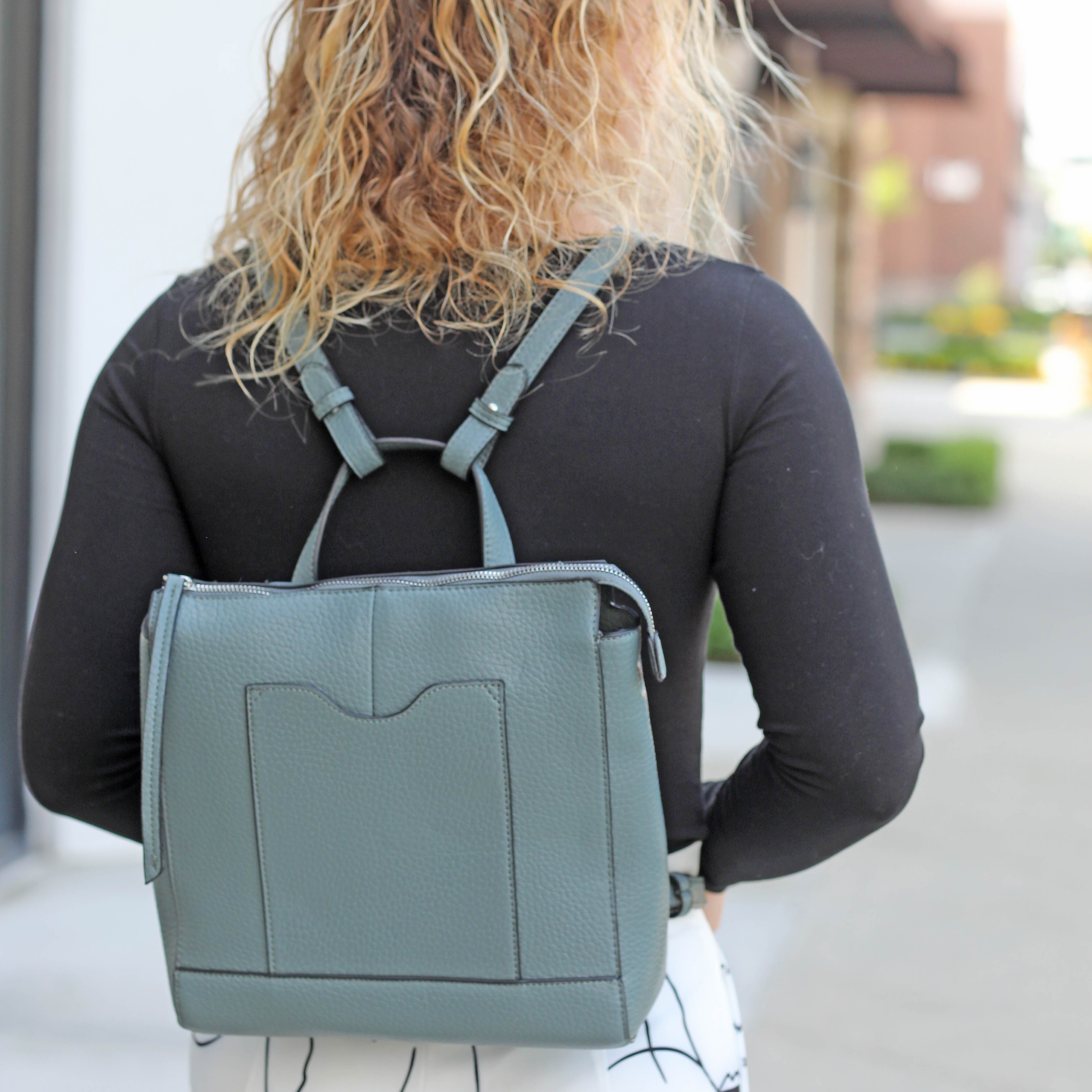 Three in one bag! Wear it as a crossbody or a backpack with an adjustable strap that easily detaches. It also comes with a satchel top handle to effortlessly pick up. Backside exterior zipper pocket, and on the front side you get a long open pocket for easy phone access. The interior contains a zippered pocket, 3 RFID card sleeves, and one large compartment. Decorative long zipper pull for easy grab and get inside.