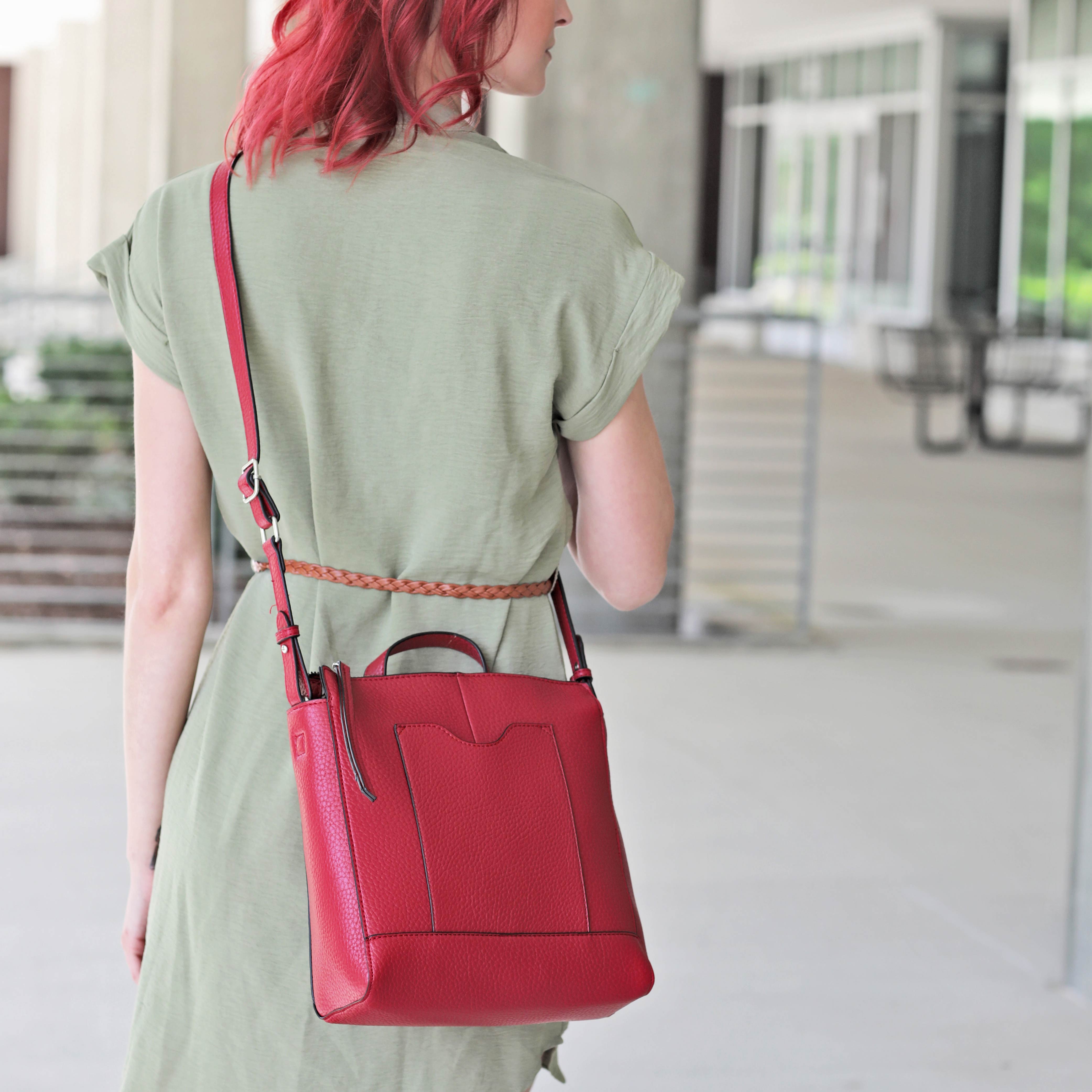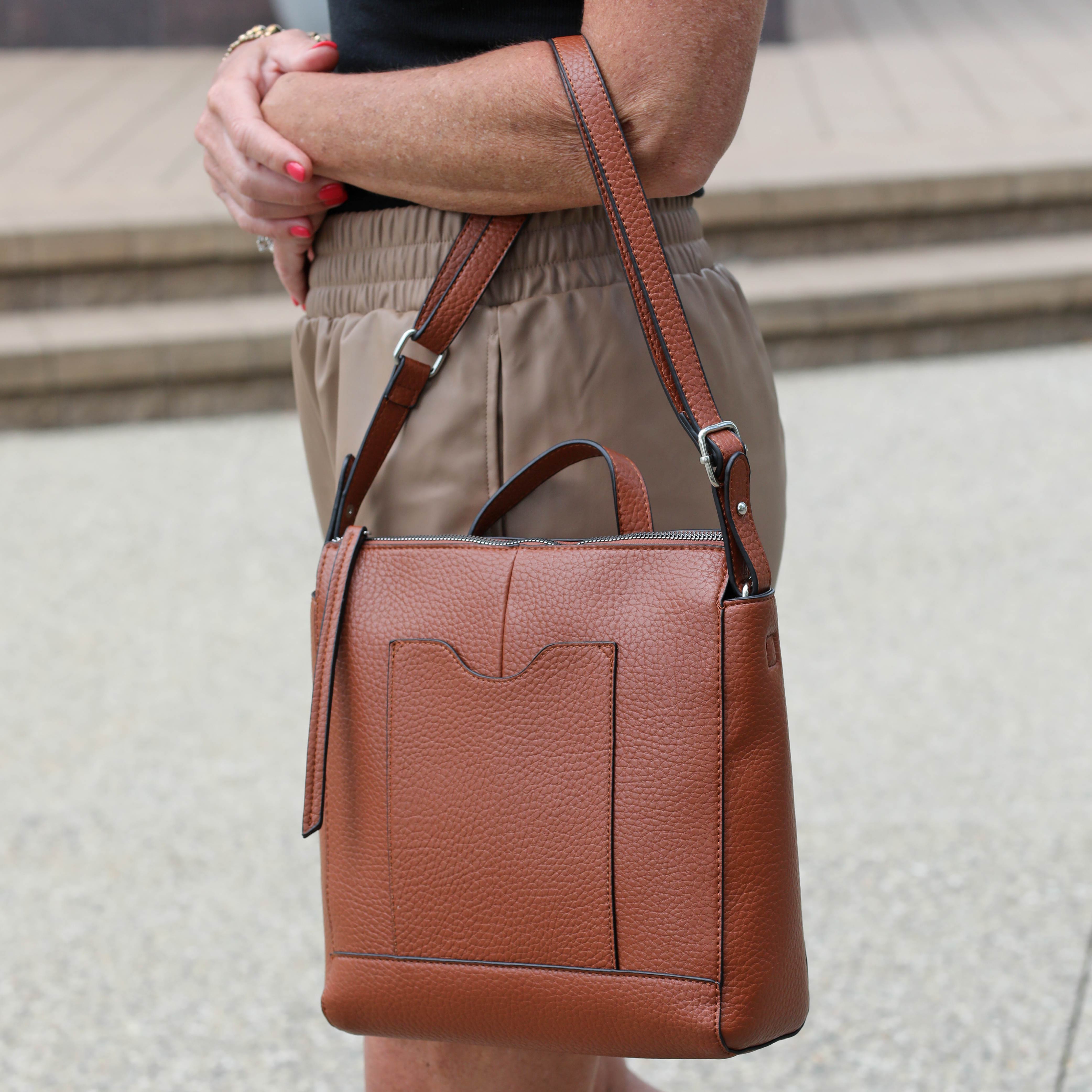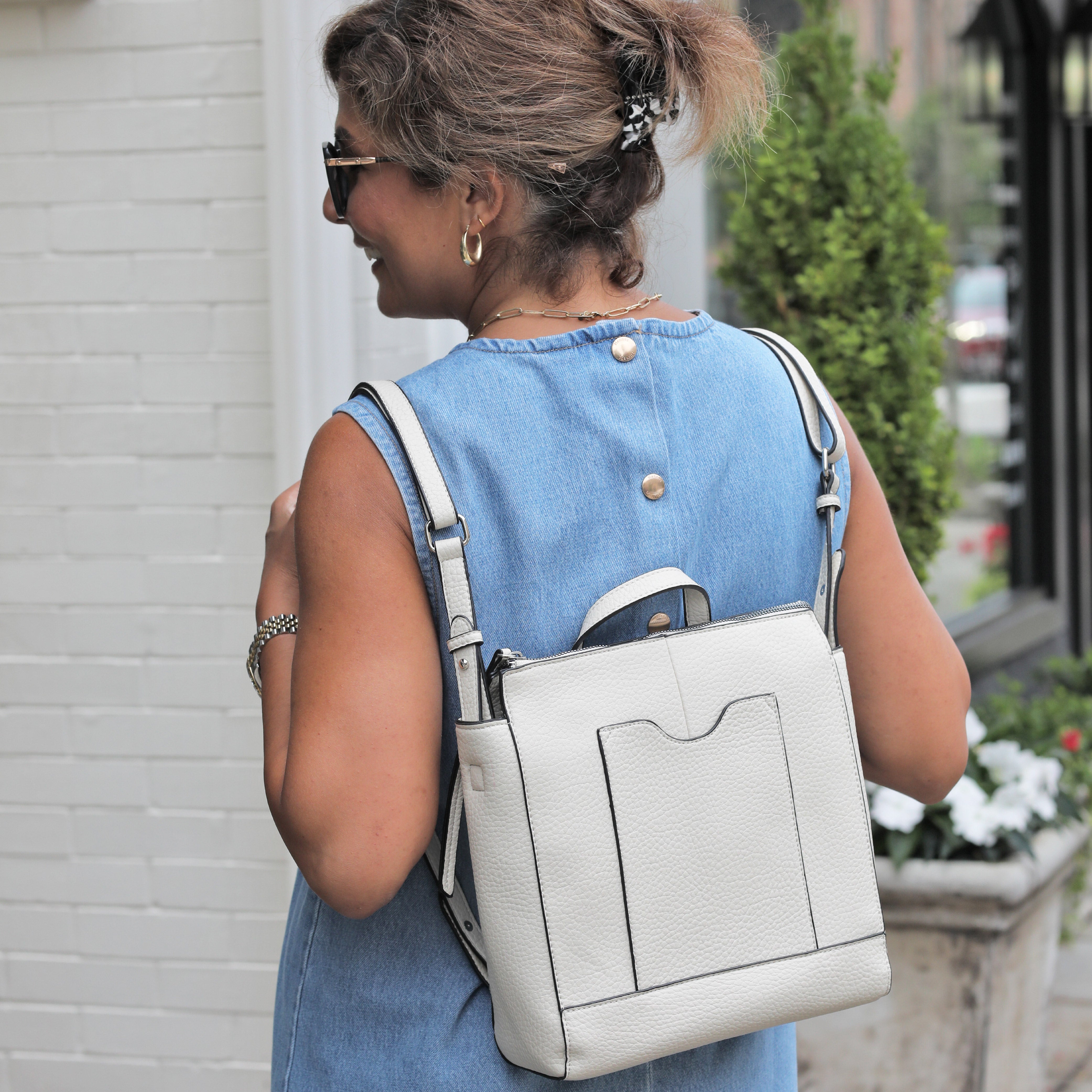 • Detachable crossbody strap that multipurposes as a backpack strap