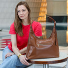 This effortlessly chic shoulder bag features a slouchy silhouette with plenty of room for your everyday essentials. Designed with an exterior zipper for quick access, an interior zipper pocket for organization, and built-in RFID card sleeves for added protection.