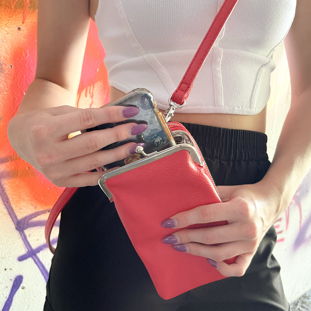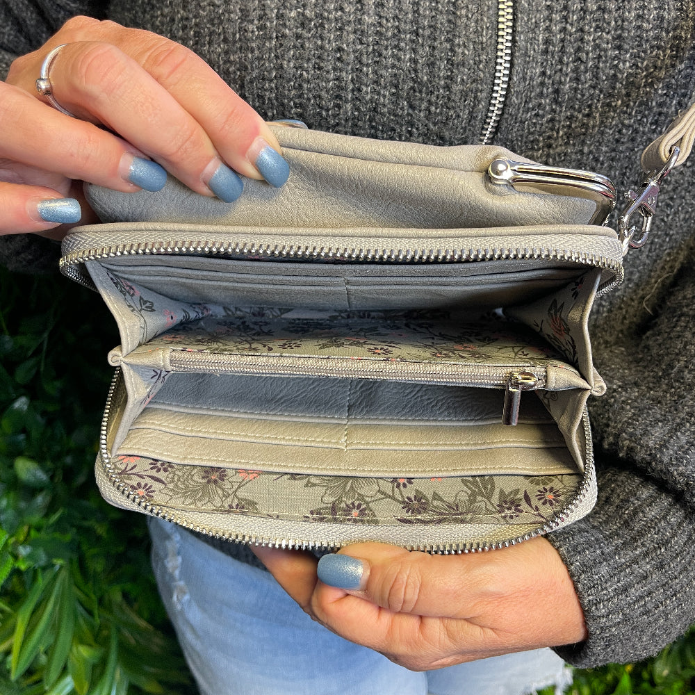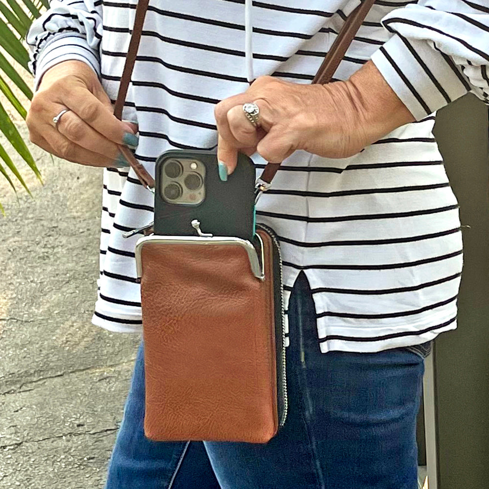 A great wallet on a string, with the added fun to detach the snap wallet when you need less space! Named after a go-getter, busy mom and business woman, who sports so many of K.Carroll designs. She can multi-task as good as this crossboy! Interior zipper, full bill compartment and lots of room for your cards and receipts.
